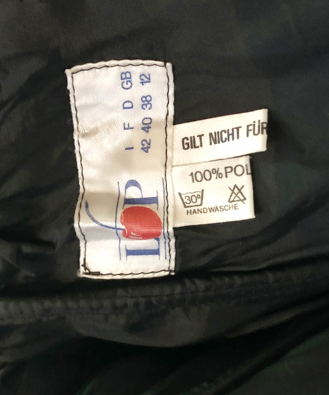 De jurk sluit met een ritssluiting aan de achterzijde en is gevoerd voor extra draagcomfort. De kwaliteit van dit stuk is uitzonderlijk, met zorg vervaardigd – vermoedelijk in Duitsland, gezien de Duitstalige verzorgingsinstructies op het label.