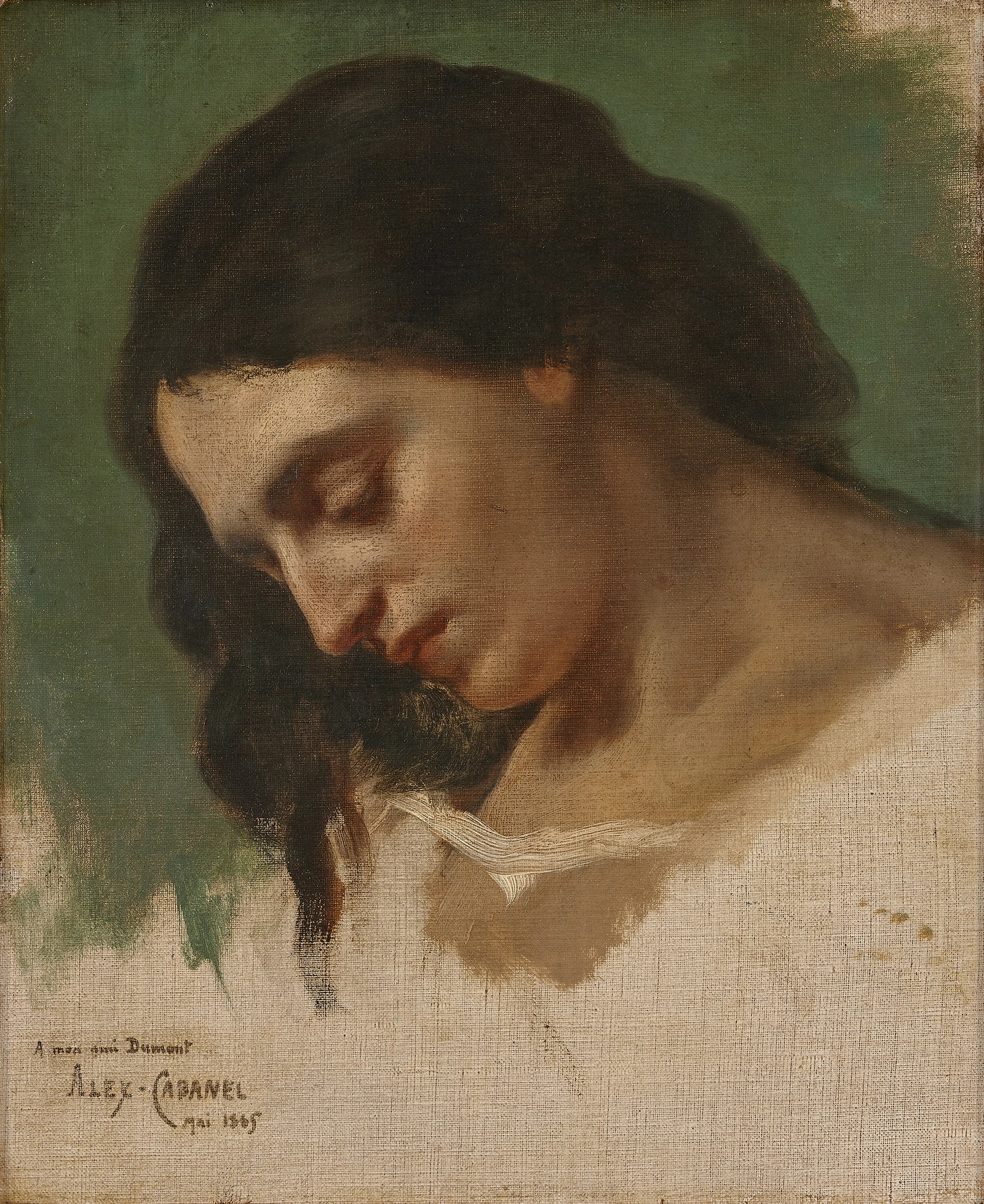 Alexandre Cabanel (1823-1889) werd geboren als zoon van een timmerman maar ontving tijdens zijn studie aan de École des Beaux Arts in Montpellier een beurs, waarna hij verhuisde naar Parijs om zijn studie aldaar aan de École des Beaux Arts voort te zetten. Aanvankelijk schilderde hij voornamelijk historiestukken en genrestukken, maar zijn bekendheid dankt hij aan zijn Romantische schilderijen, vaak in oriëntaals thema, vanaf het einde van de jaren 1840. In 1855 werd hij benoemd tot ridder in het Légion d’honneur.
