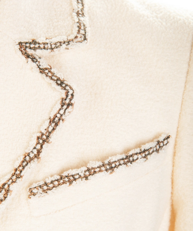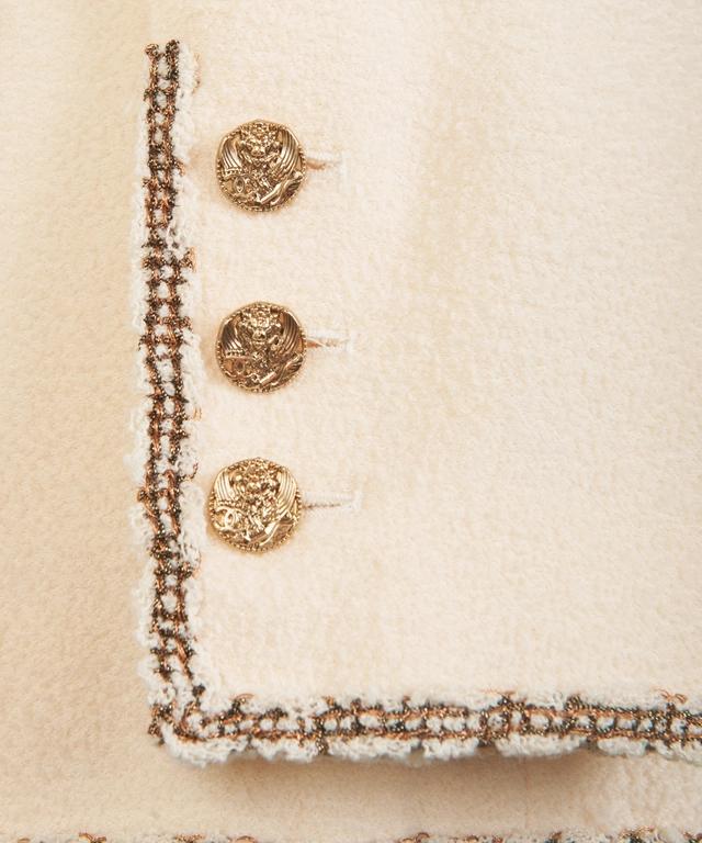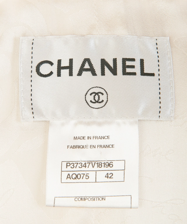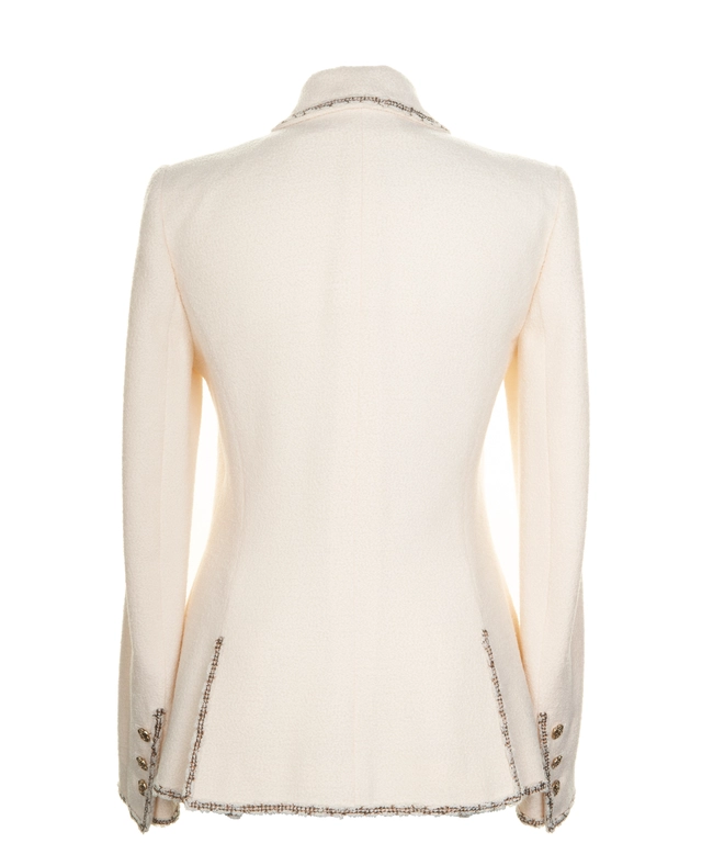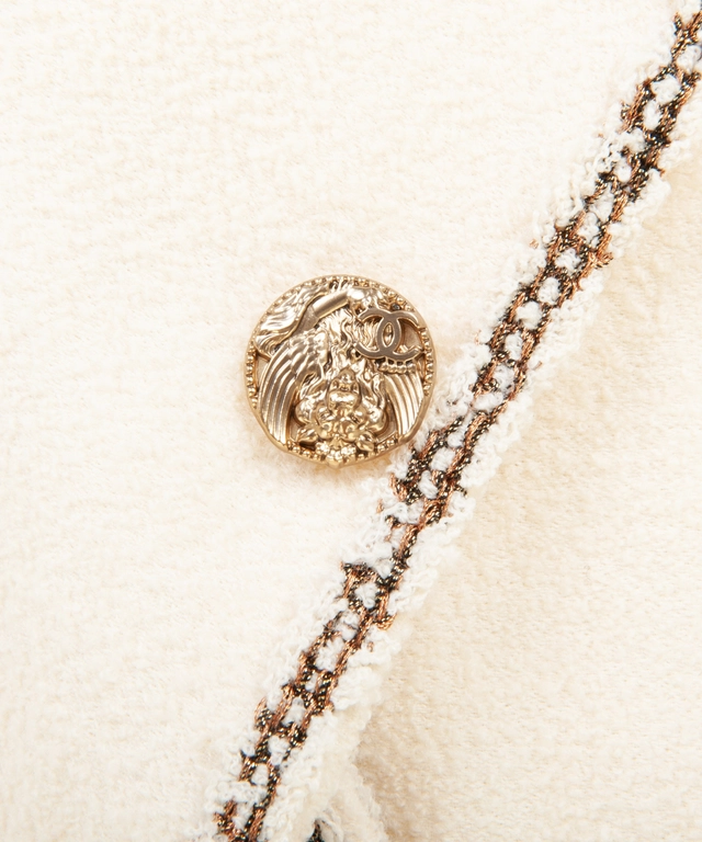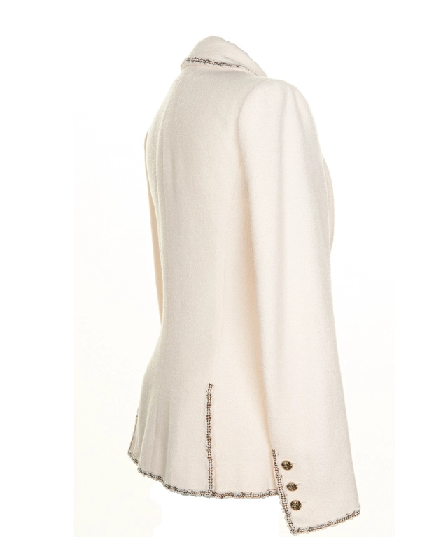 Chanel Ivoorkleurig Bouclé Jasje met Contacterende Biesafwerking