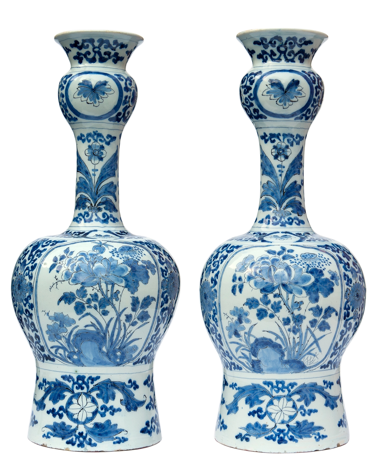 Een Paar Knobbelvazen in Blauw en Wit Delfts Aardewerk