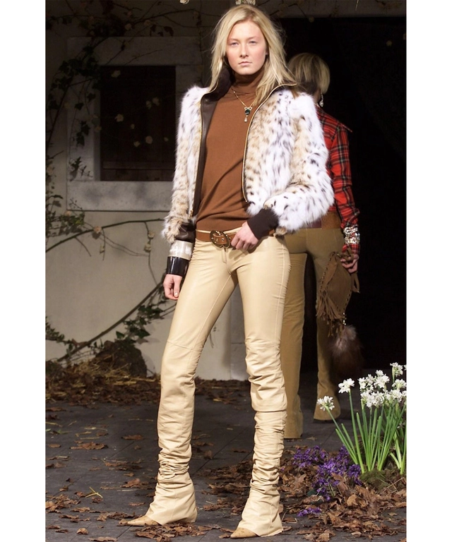 FW 2001 Dolce & Gabbana Runway Brown Leather Extra Long Skinny Pants
