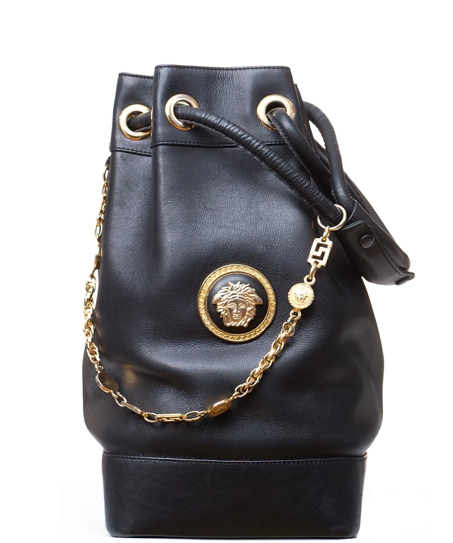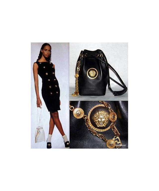 Gianni Versace Couture Medusa Schoudertas in Zwart Leer