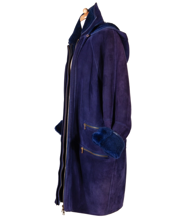 Gianni Versace Sheepskin Shearling Leather Coat with Hoodx