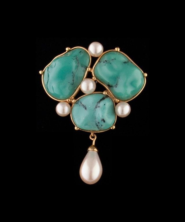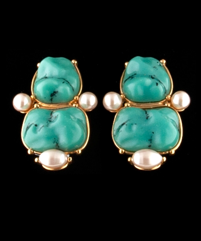 Yves Saint Laurent 1986 Couture Parure van Turquoise Stenen en Barokke Parels