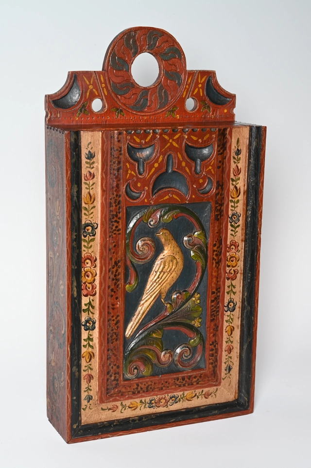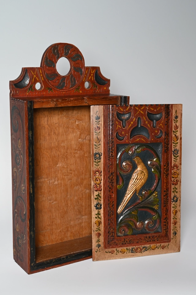 This school bag, painted in the typical Hindeloopen colors with on the front a lapwing, which is the symbol for "love".