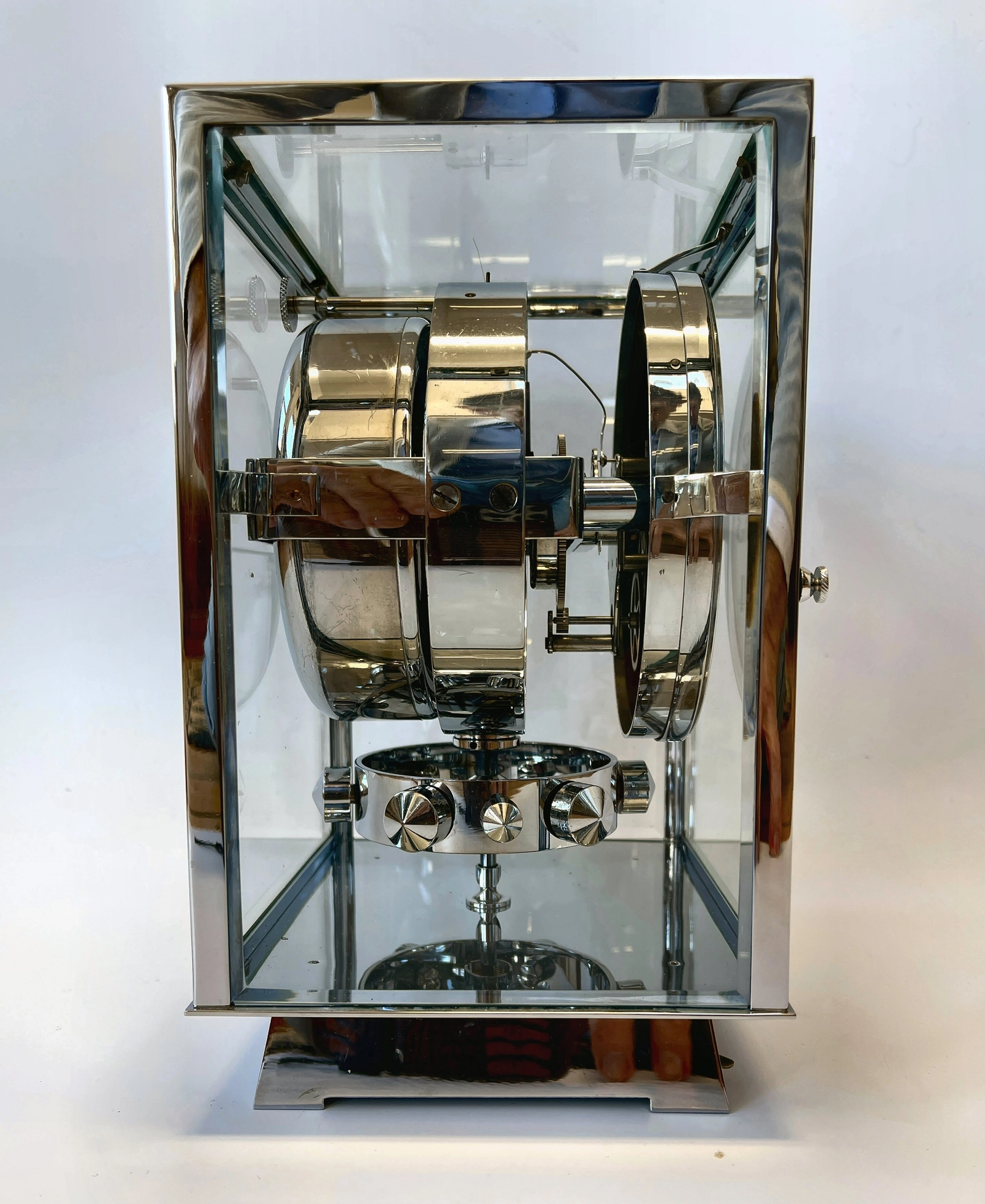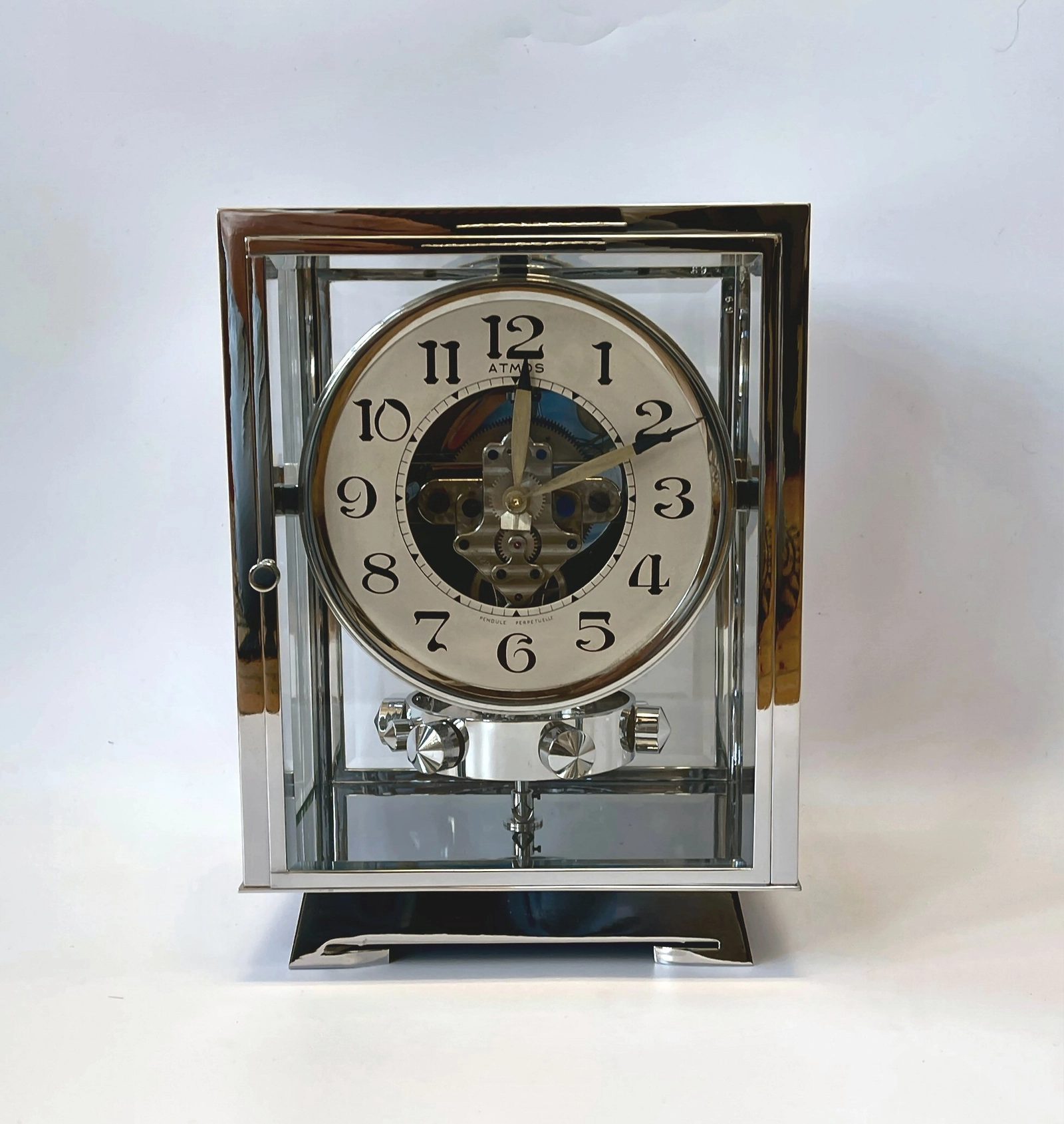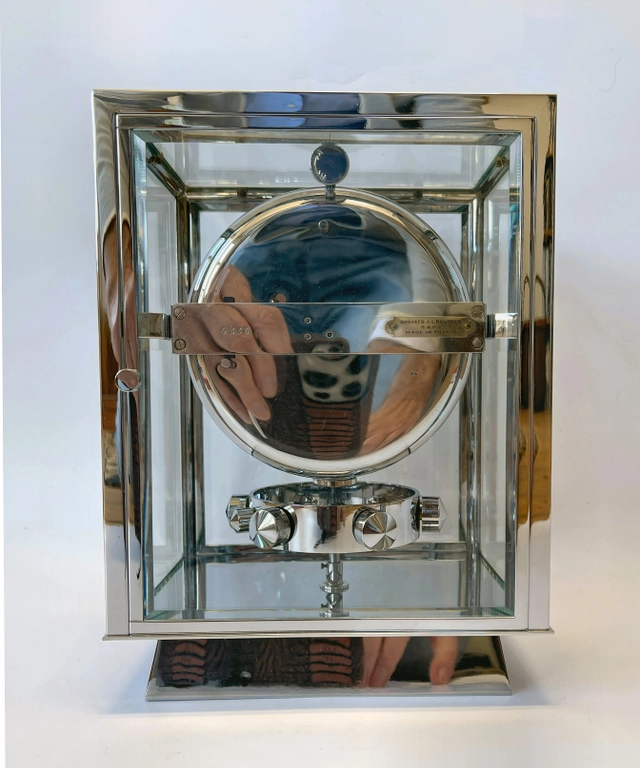 A fine model Atmos clock, chrome no 4335, by Jean Leon Reutter, circa 1930.