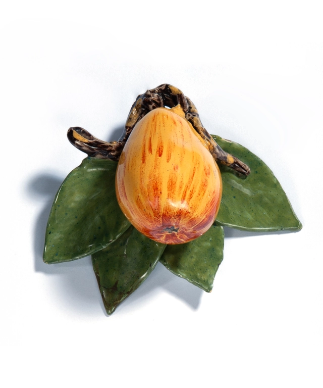 Similar exvamples: Four fruit models of this type are illustrated by Van Dam, 2004, p. 173, pl. 116, who comments that these were "small items to decorate the table at any time of year;" and twelve fruits, including several very similar apples and pears, are illustrated by Lavino, P: 58, who on p. 81 also illustrates a collection of these fruit models hung against tiled walls. A garland composed of fifteen similar fruit models in the Musees Royaux d'Art et d'Histoire, Brussels, is illustrated by Helbig, Vol. 11, p. 70, fig. 57; and by De Jonge, 1965, p. 307, pI. 194, and De Jonge, 1970, p. 142, ill. 149.