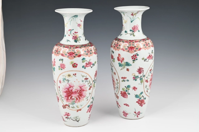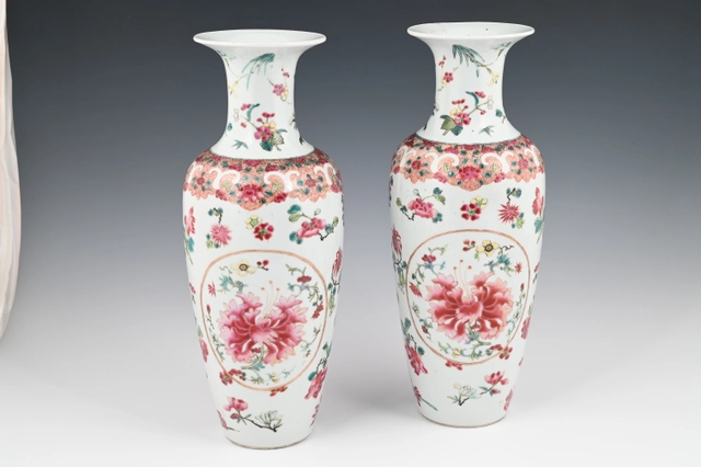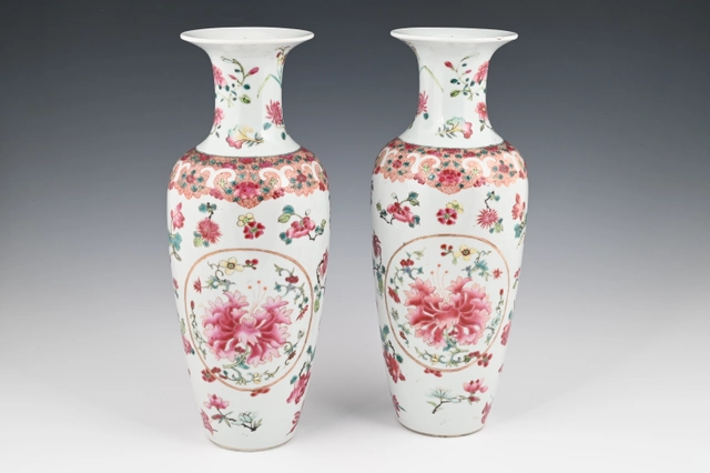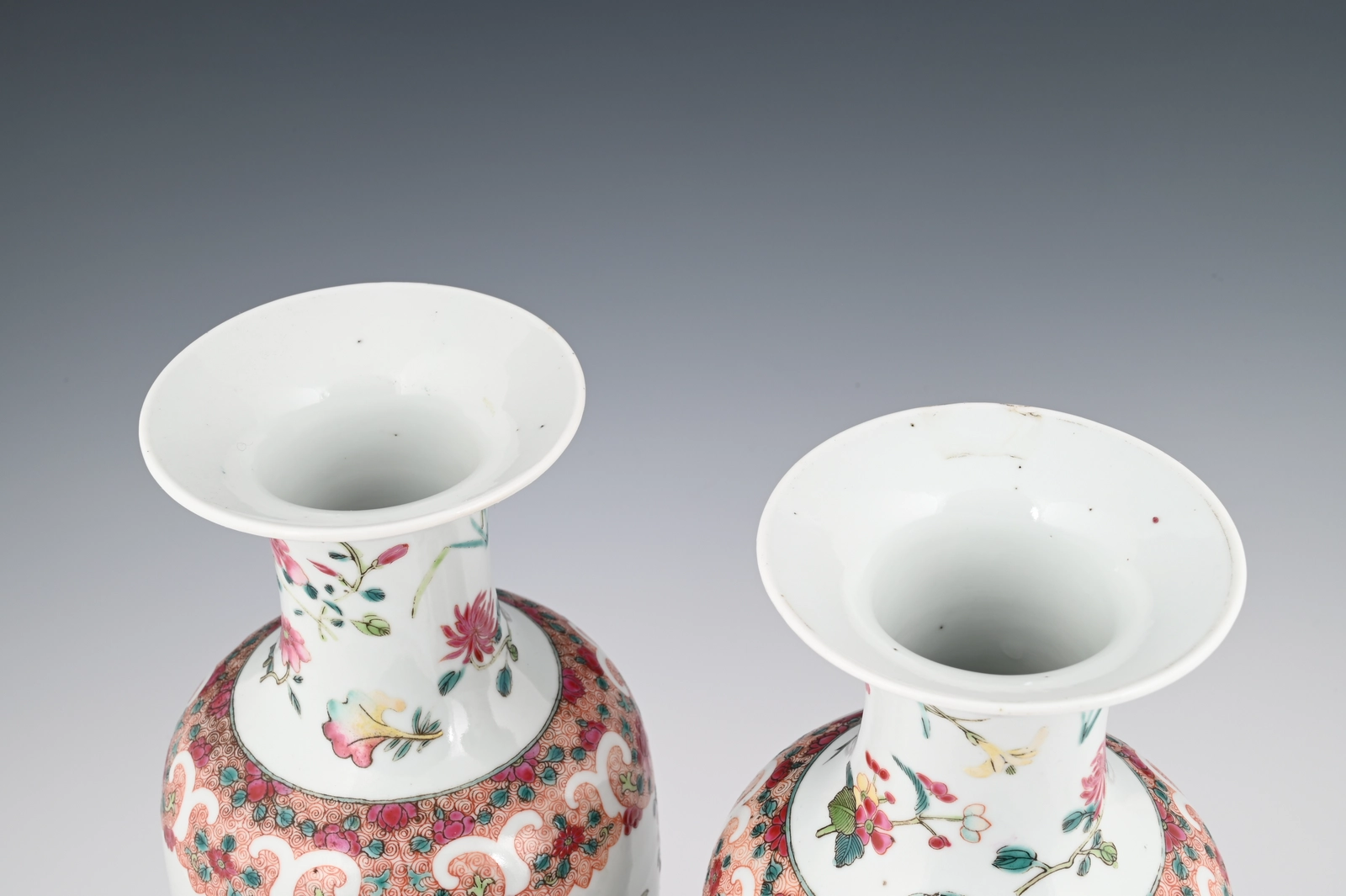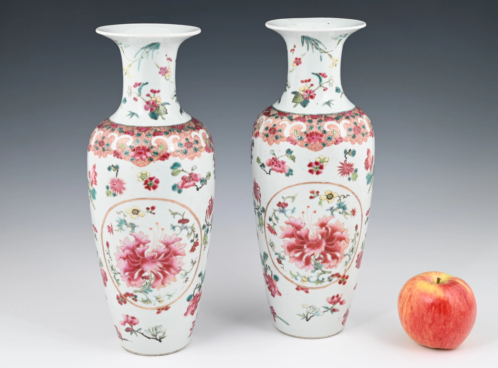 A pair of Chinese porcelain Famille Rose baluster Vases.