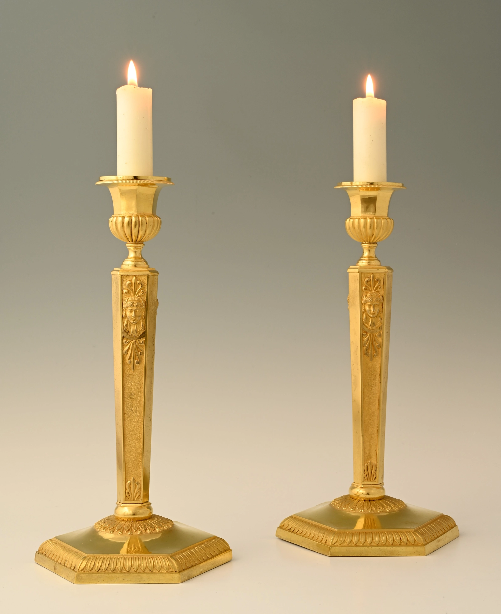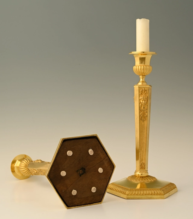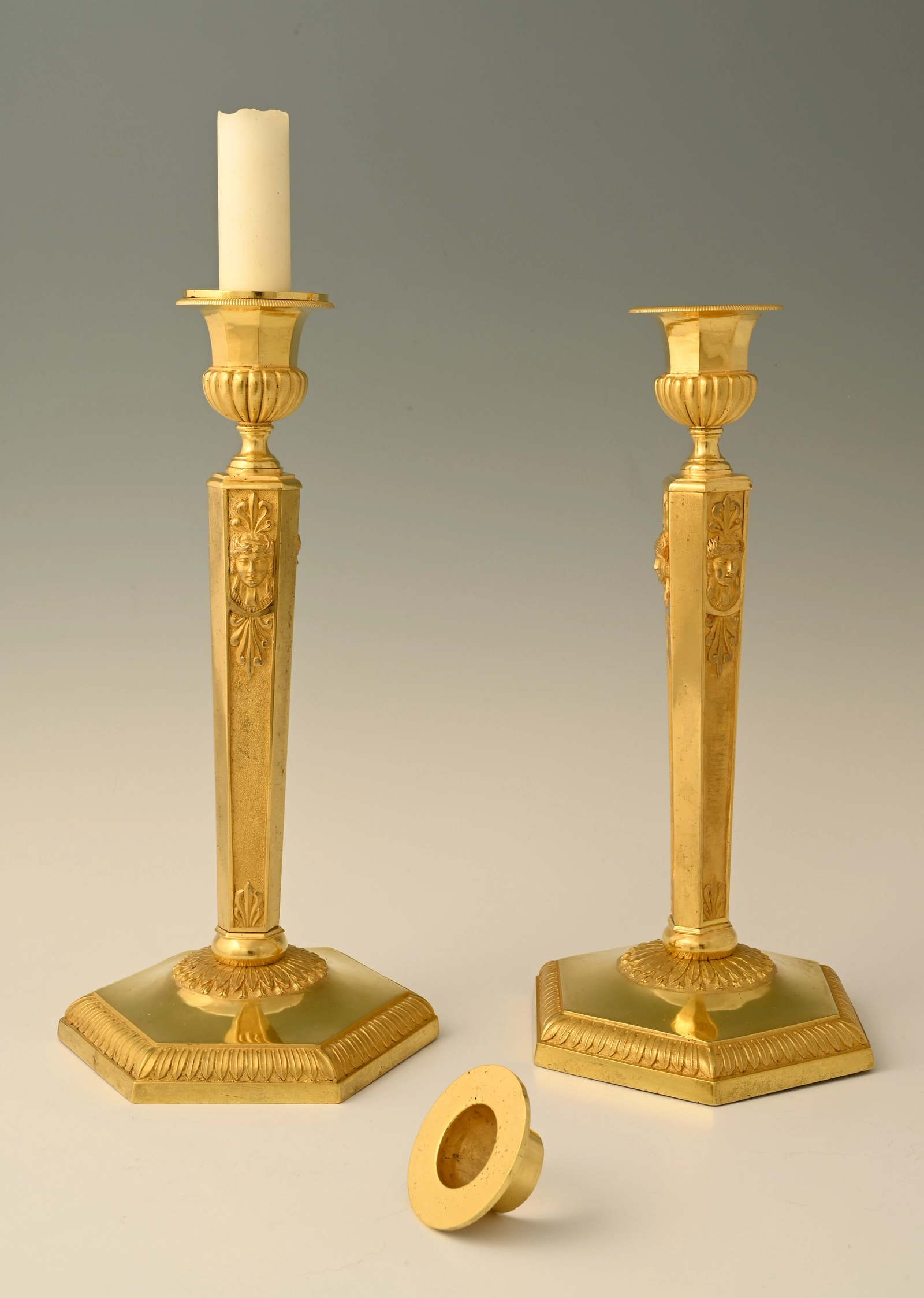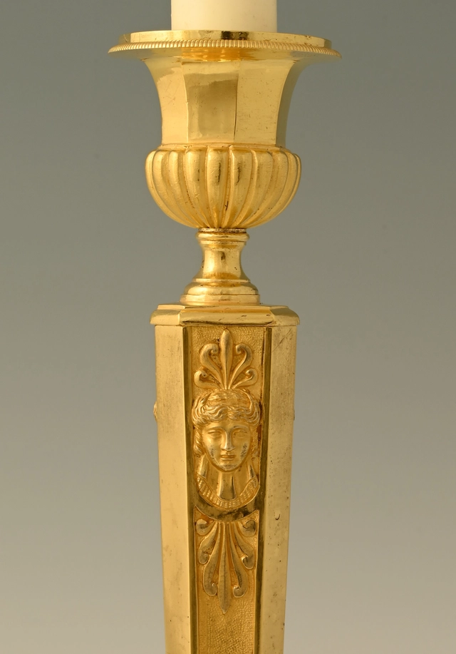 A pair of ormolu bronze Empire candle sticks