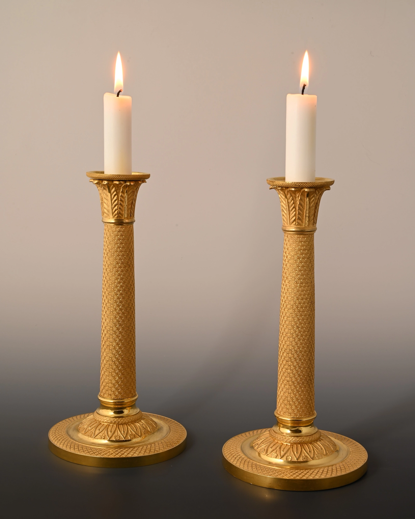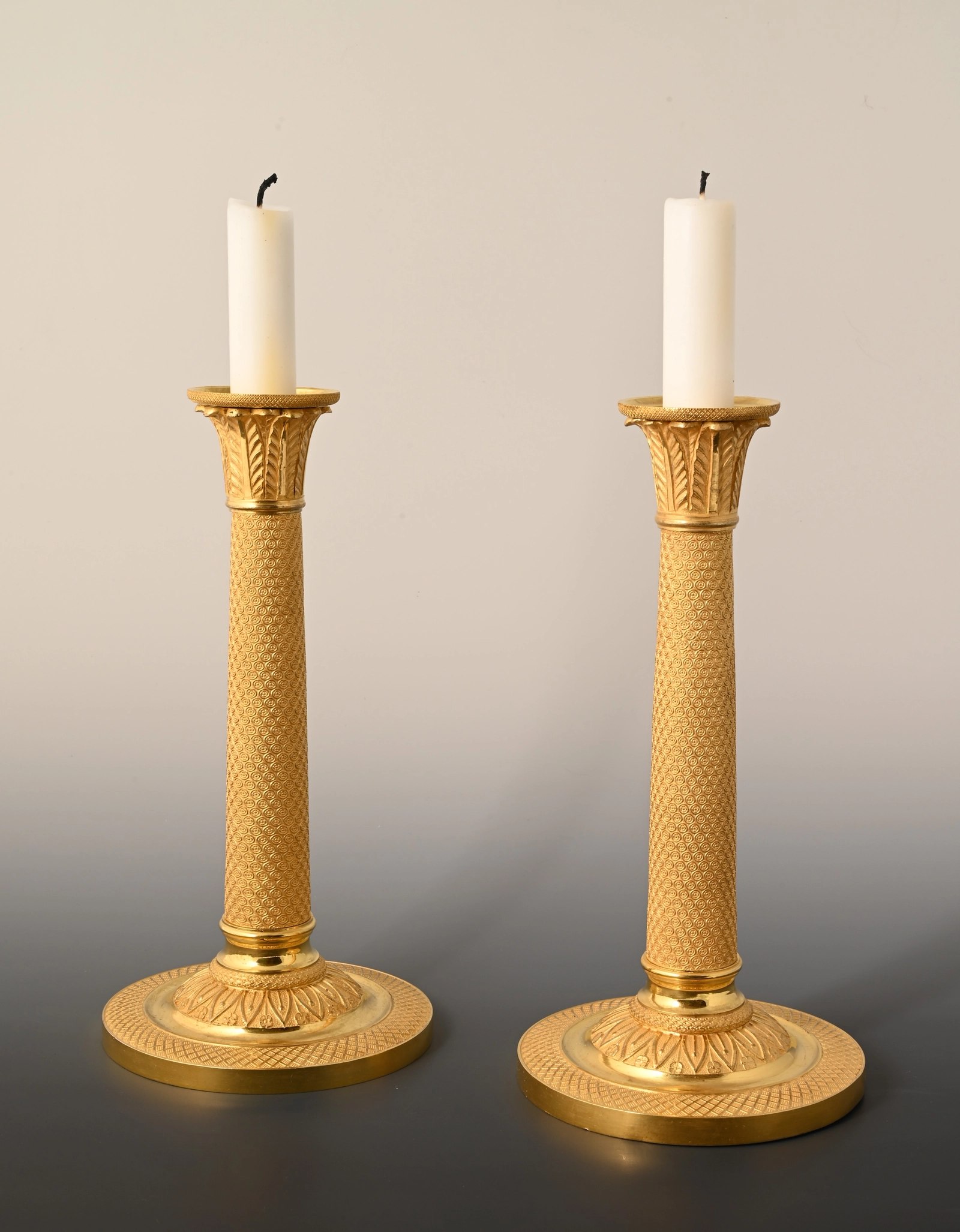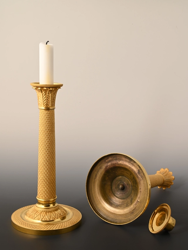 A pair of ormolu bronze Empire candle sticks