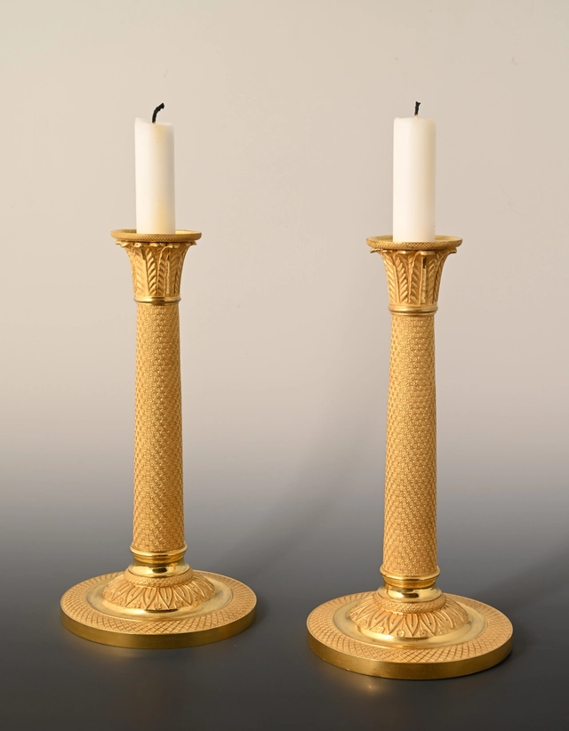 A pair of ormolu bronze Empire candlesticks