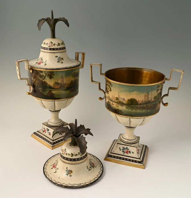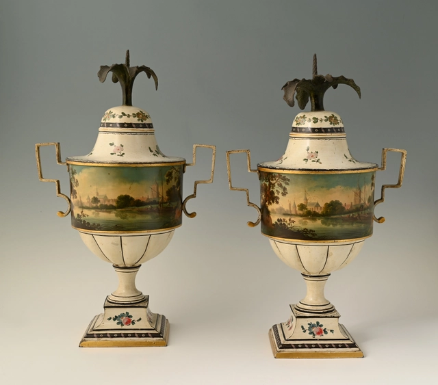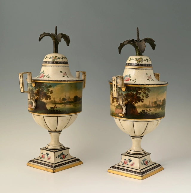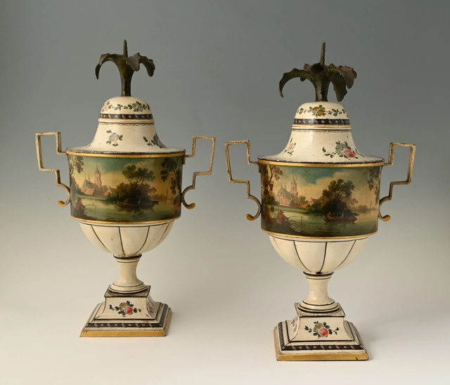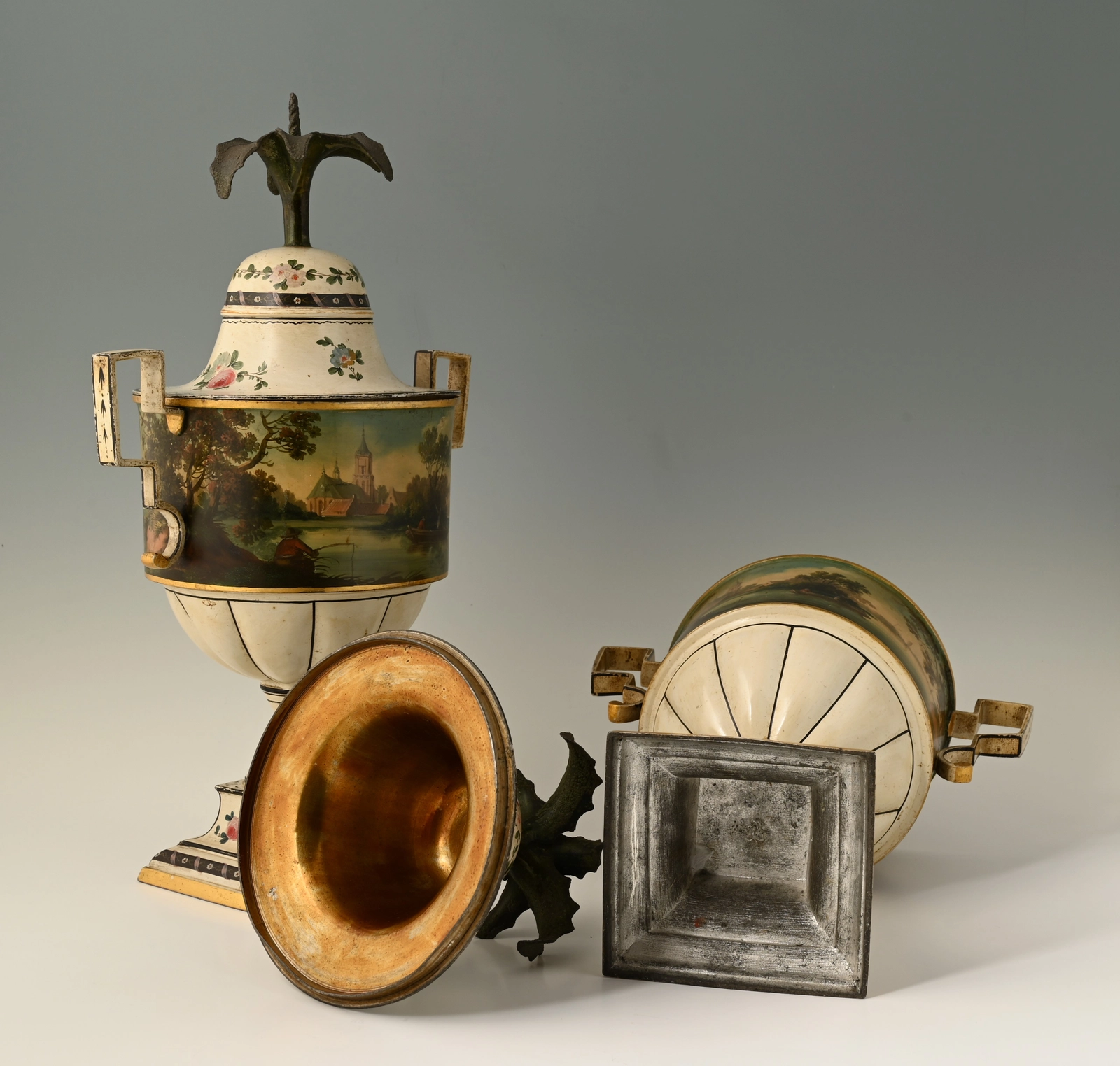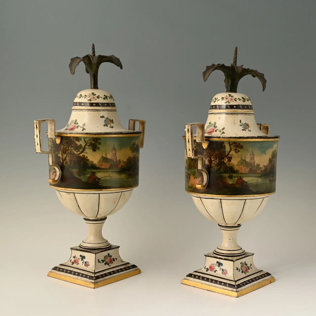 A rare and beautiful pair of lacquered pewter chestnut vases