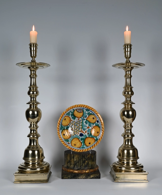 This model of candlestick was made for use in synagogues, which is why they are rarely found in the antiques trade.