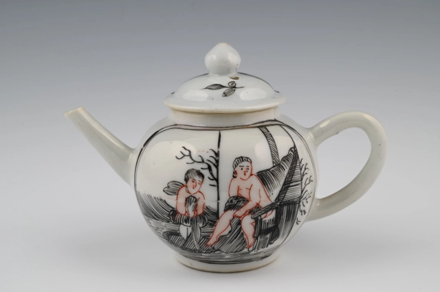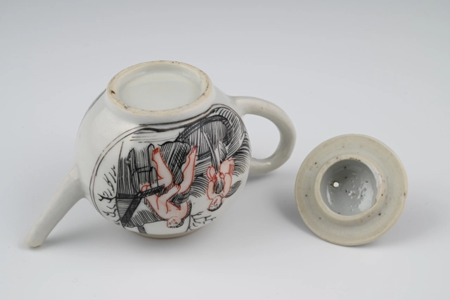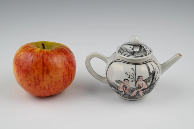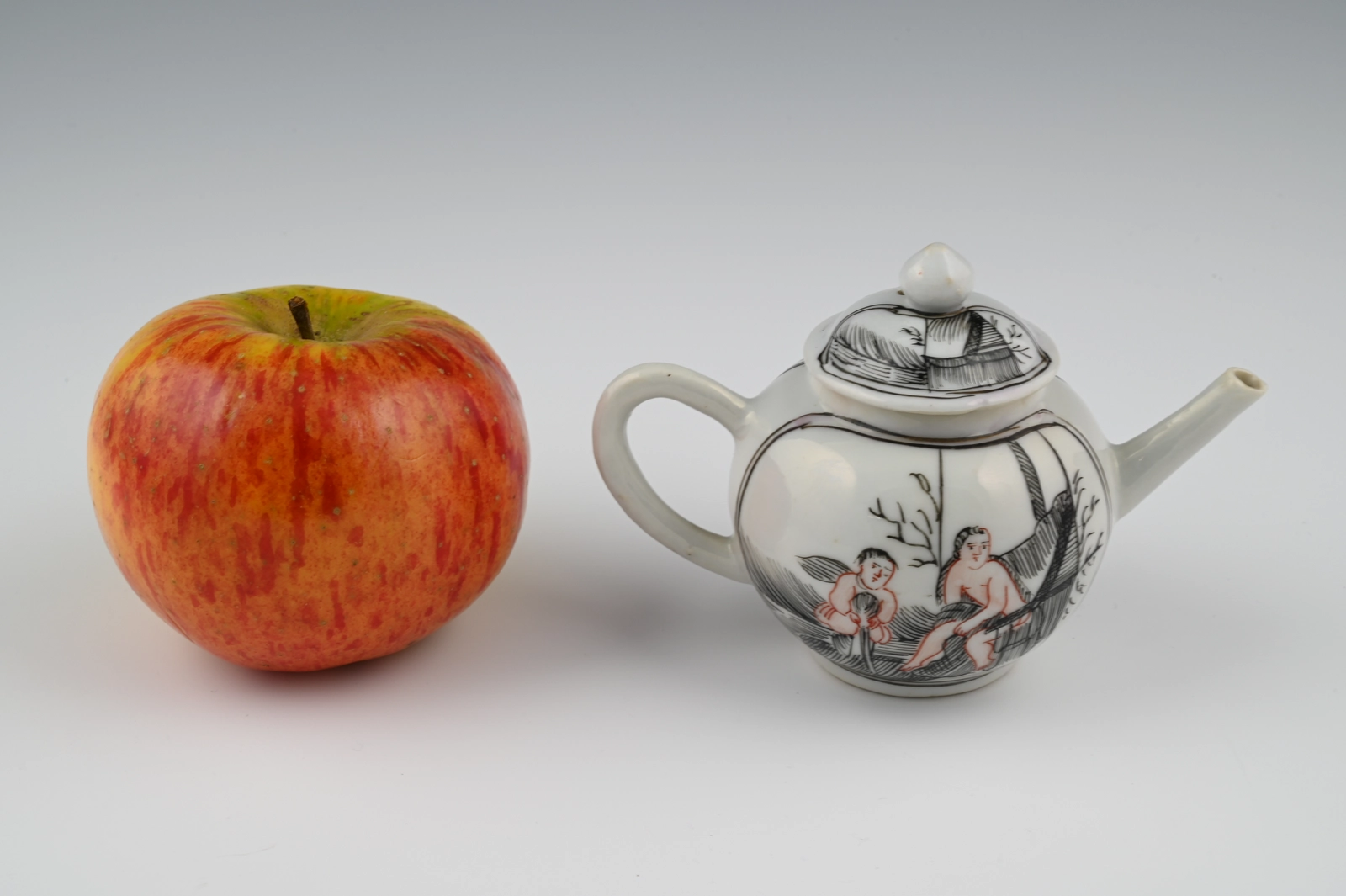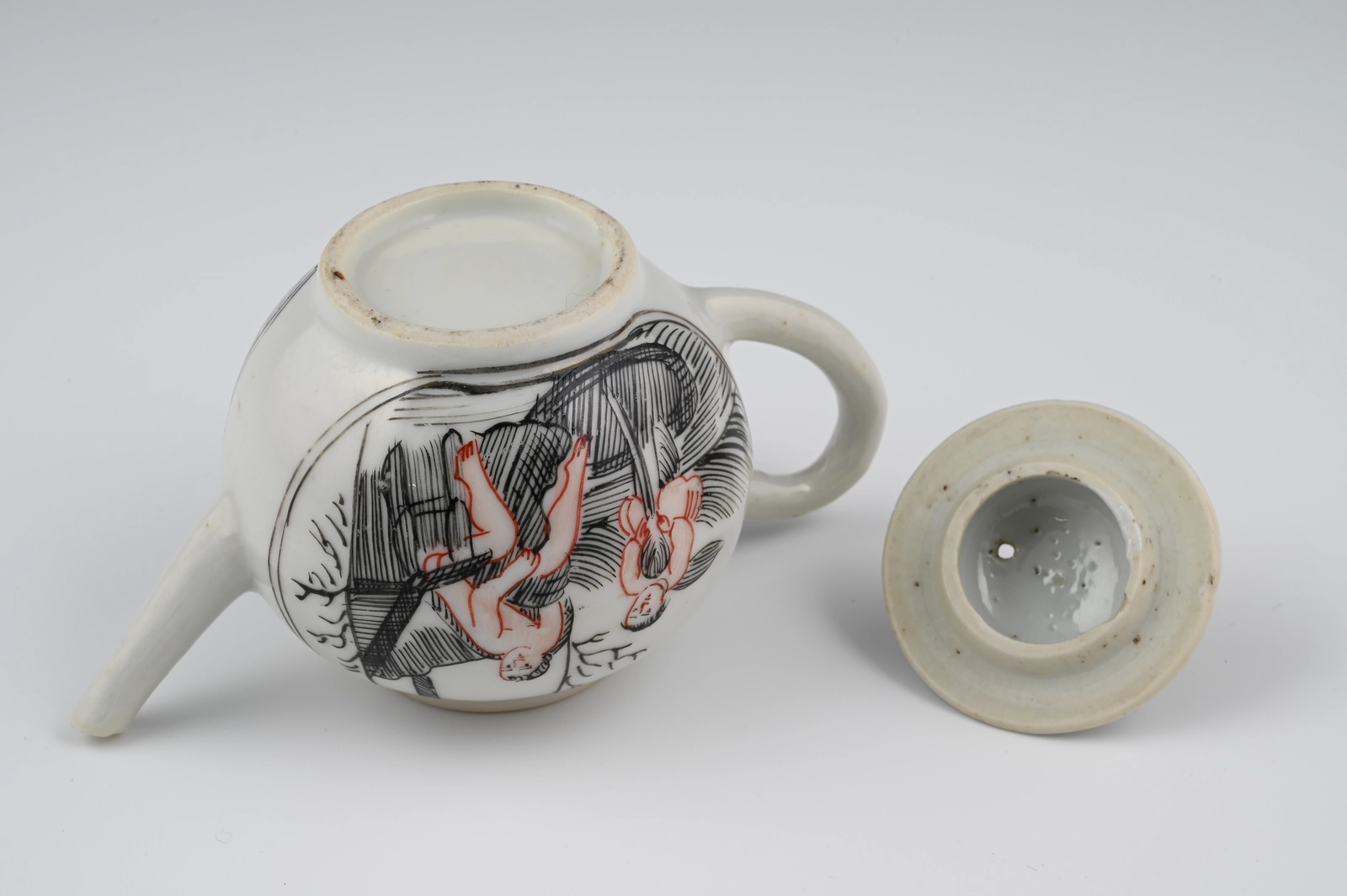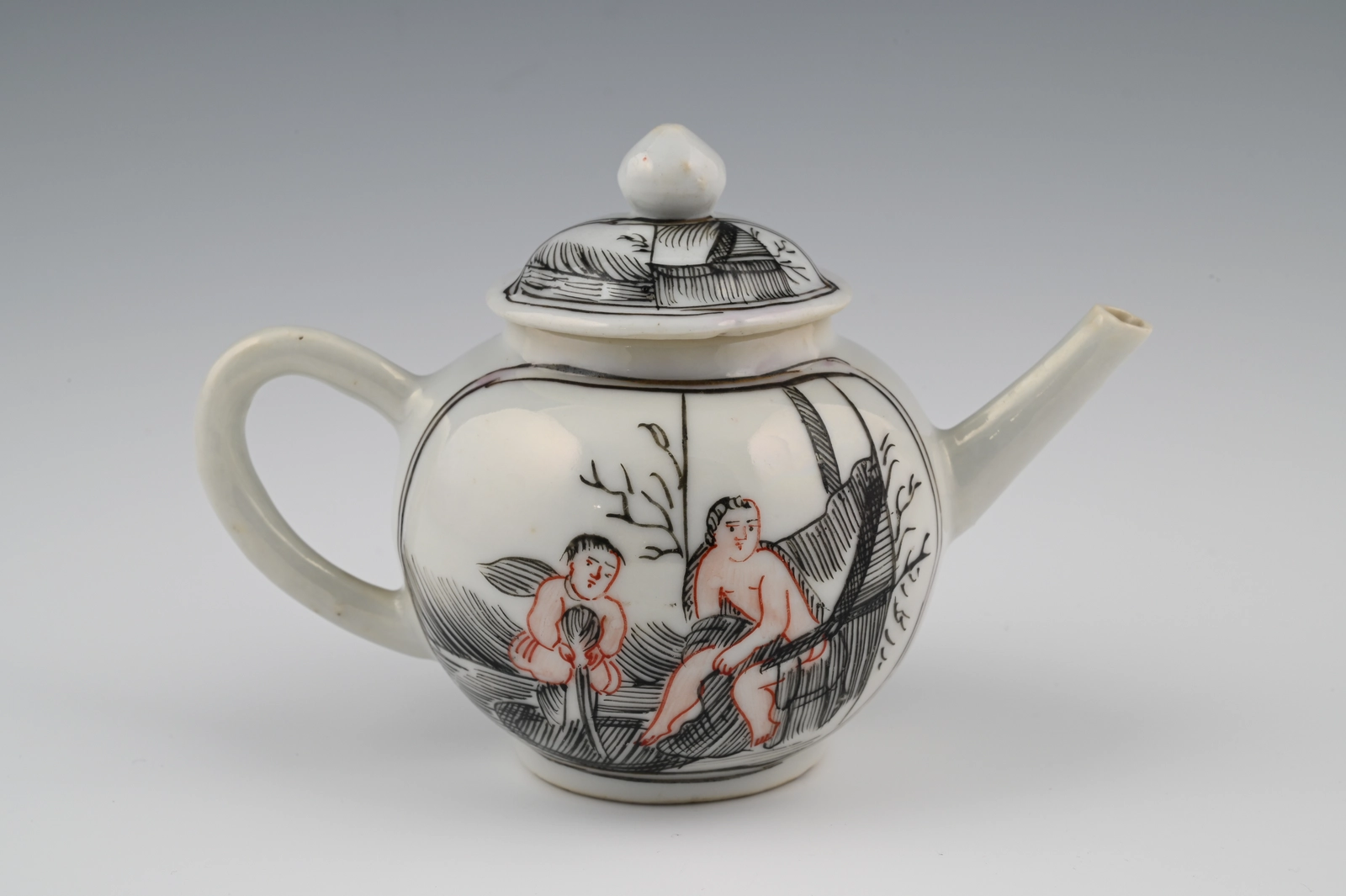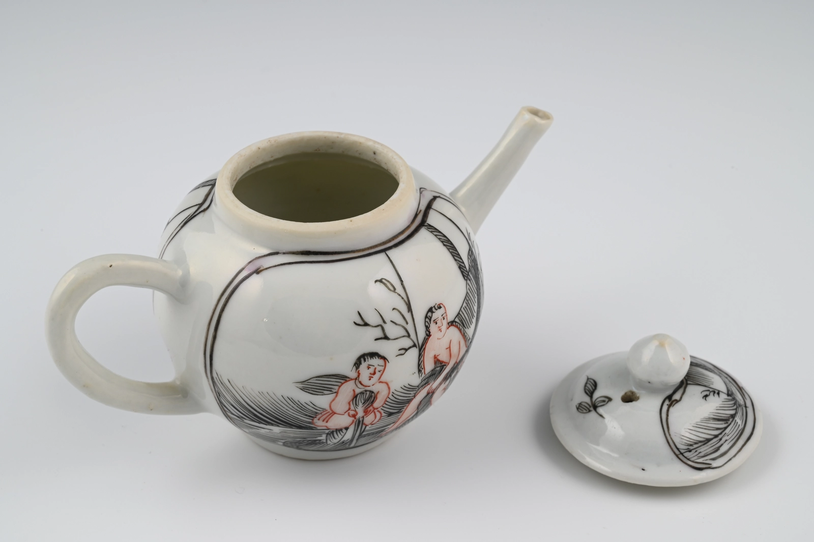 This small porcelain teapot was made in China and Dutch decorated in 'encre de chine' style.