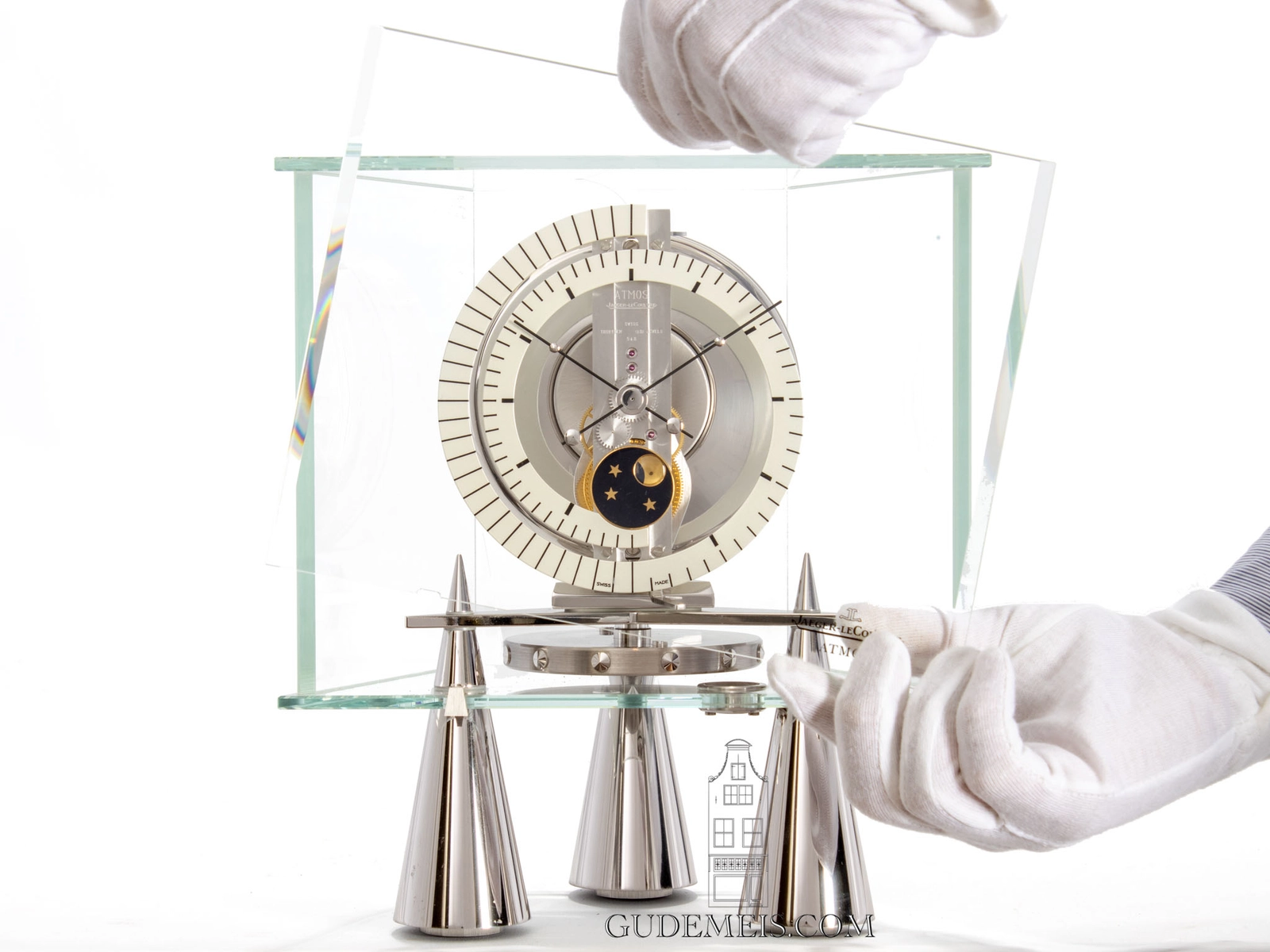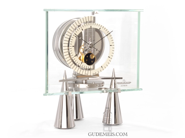 The sixty year jubilee of the atmos clock was celebrated in 1988 since Jean-Léon Reutter had made the first atmos clock in 1928. Because of this memorable feat, two Paris’ artists Kohler and Rekow were asked to produce a new and futuristic design. The two concept designs are still on show in the Jaeger-LeCoultre museum. In the years leading up to 1995 the makers of Jaeger-LeCoultre were asked to develop a new atmos clock on the basis of these two designs. This would become the Atmos Atlantis. Of this design only fifty were made annually between 1995 and 1999.