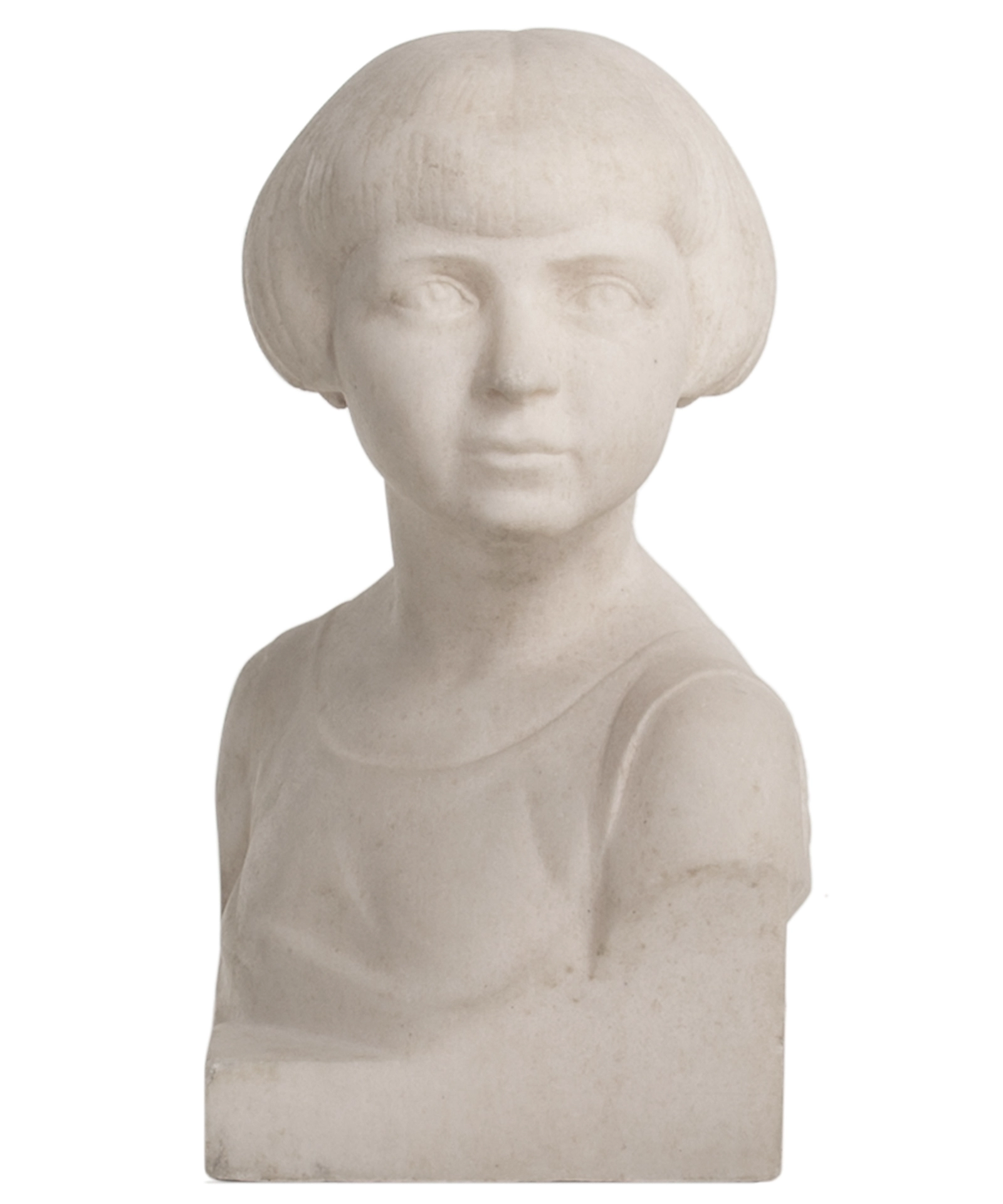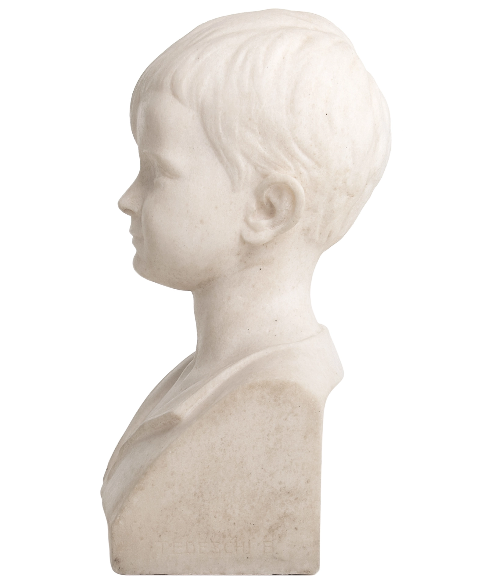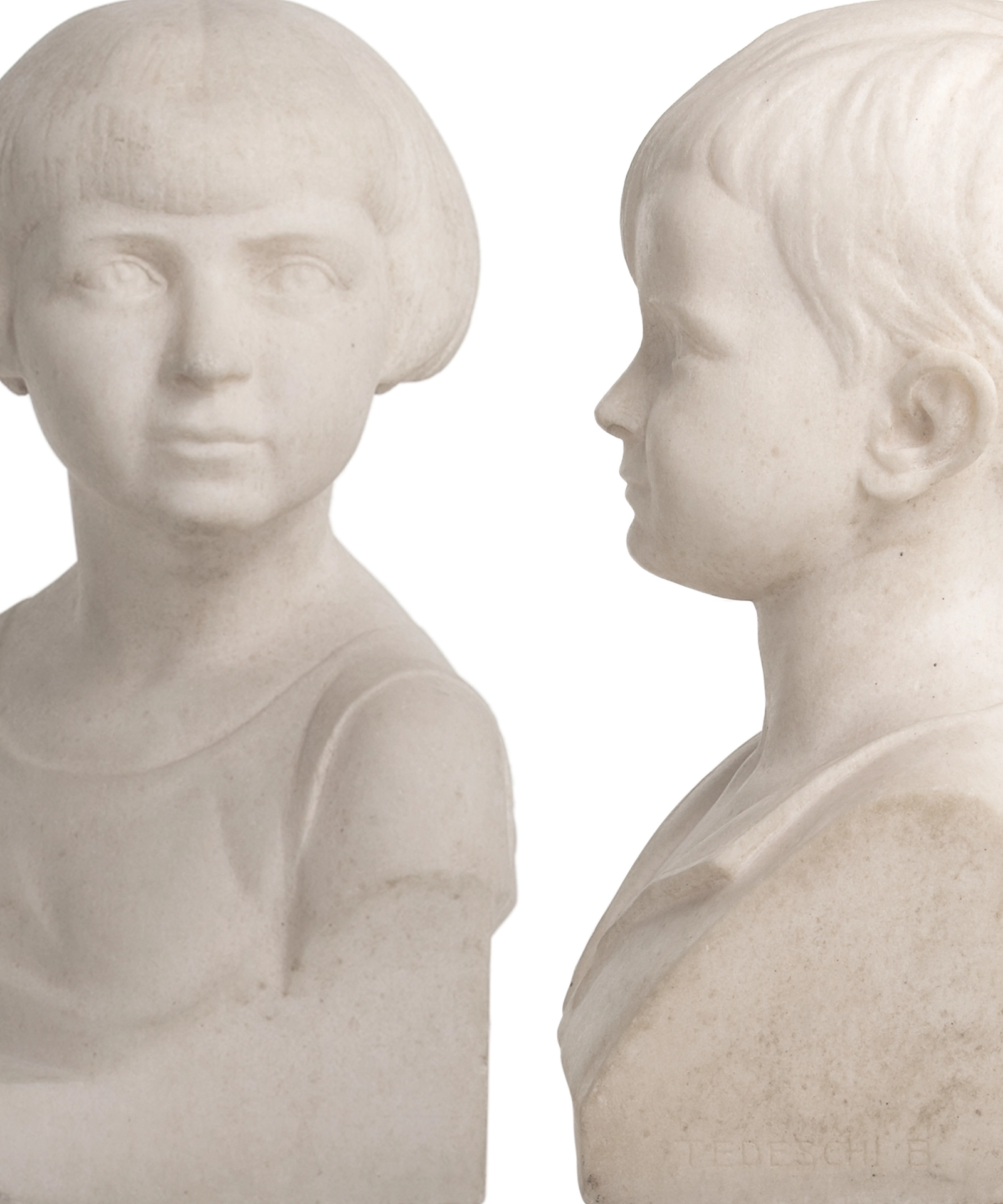 Art Deco Pair of Marble Busts of a Girl and Boy by B. Tedeschi