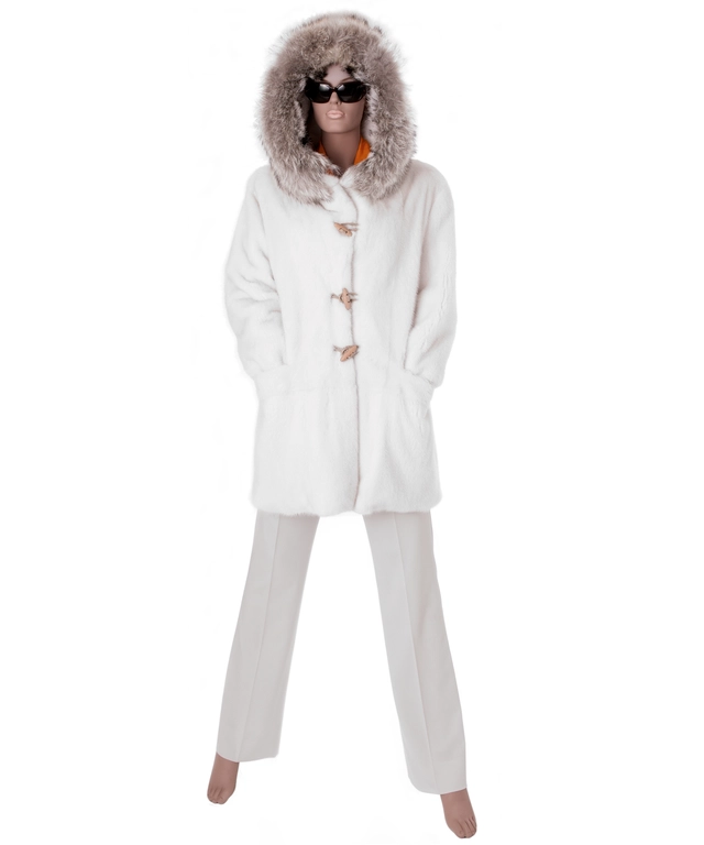 Avanti White Mink Fur Coat with Coyote Trimmed Hood