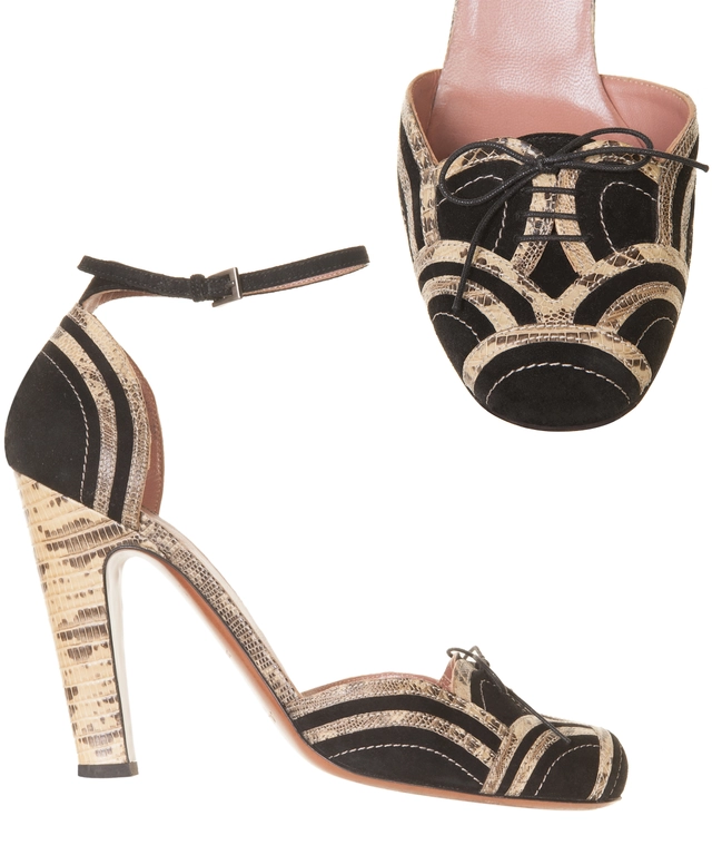Azzedine Alaïa Suède & Snake Skin Ankle Strap Pumps