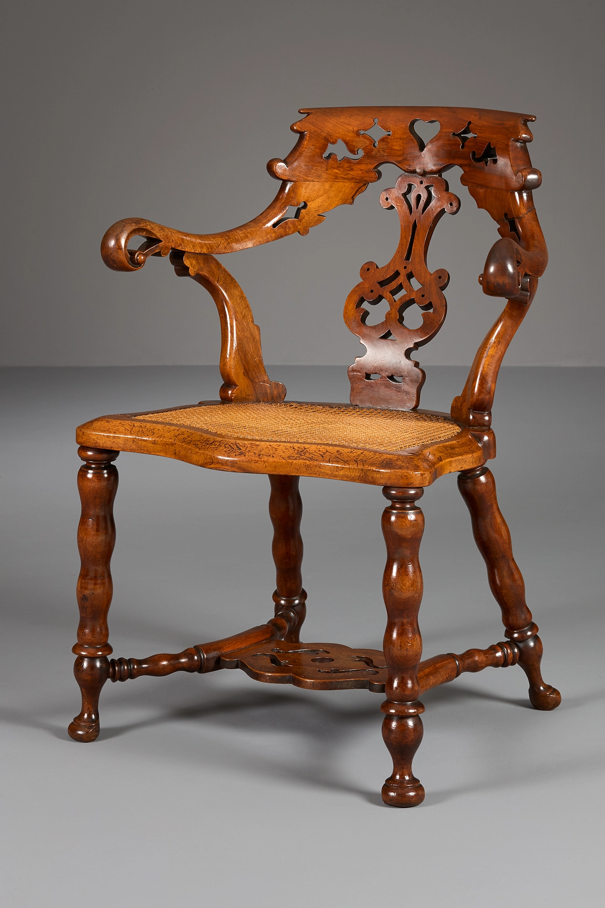 Portuguese furniture of the period exhibits strong French or English influences. This specific chair has a significant colonial influence and is probably made in Brazil.
