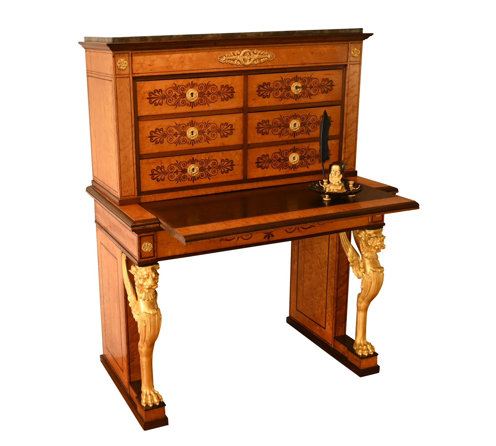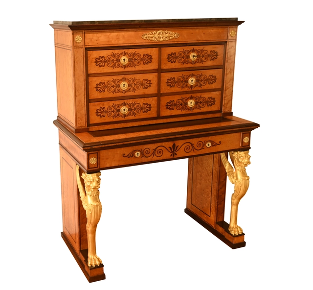 Made of oak, veneered with bird's-eye maple and rosewood.