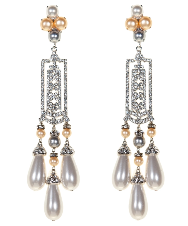 Carlo Zini Milano Oversized Pearl and Swarovski crystals Jeweled Dangle Clip Earrings