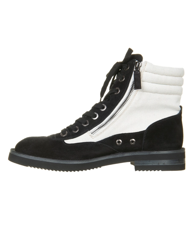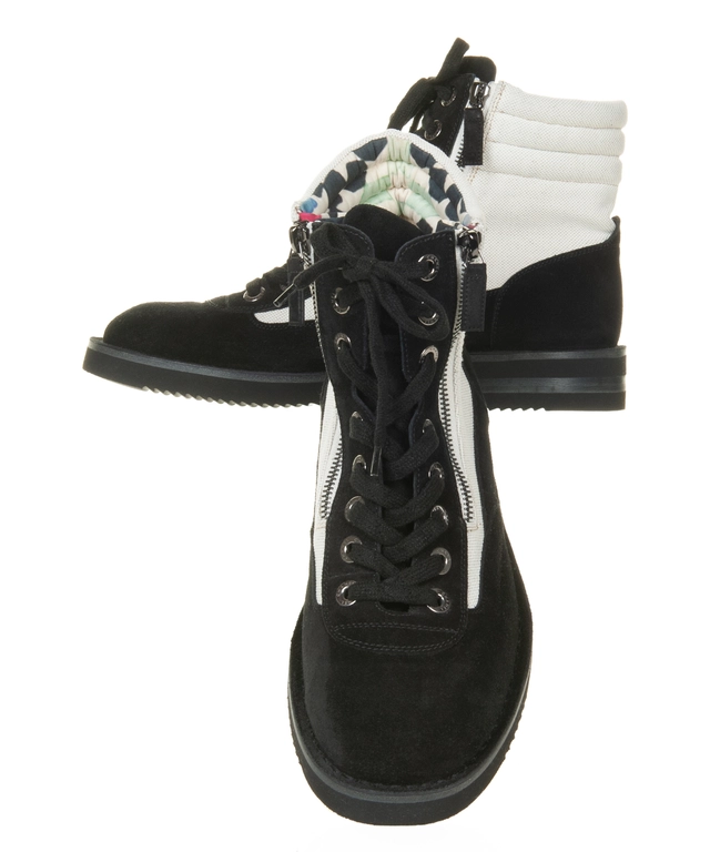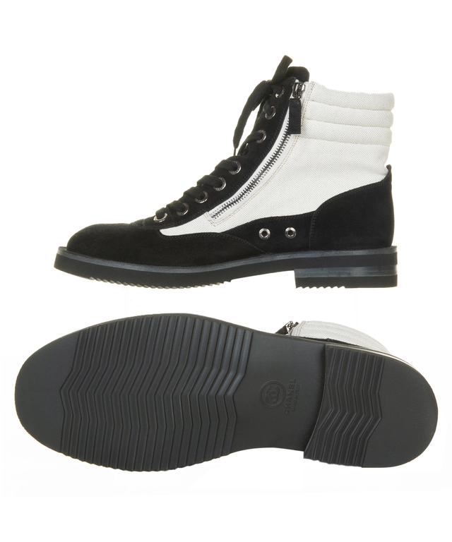 Chanel 15c Suede Canvas Cruise Cc Lace Up Short Combat Boots