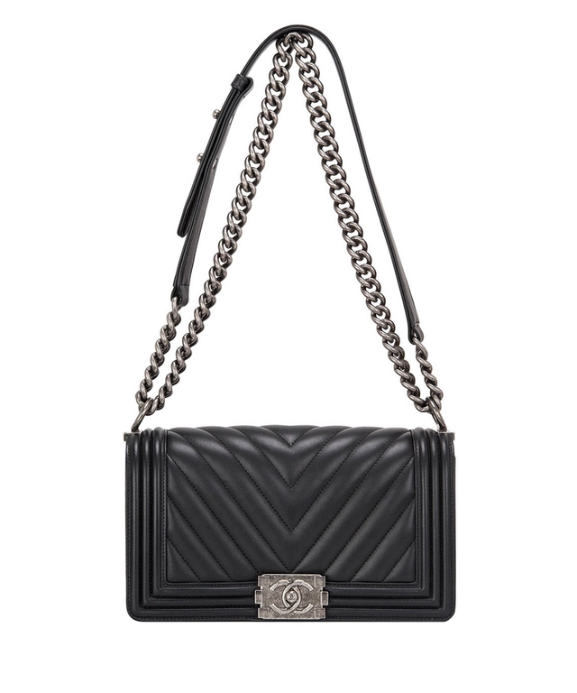 Chanel Black Chevron Quilted Boy Bag New Medium