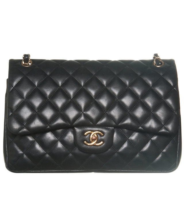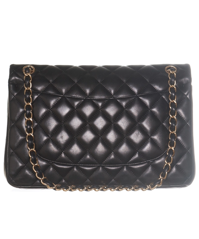 Chanel Black Quilted Lambskin Leather Classic Double Jumbo Flap Bag