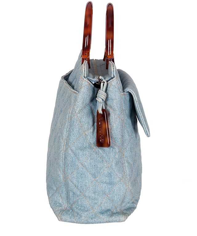 Chanel Blue Denim Quilted Tortoise Chain Shoulder Bag