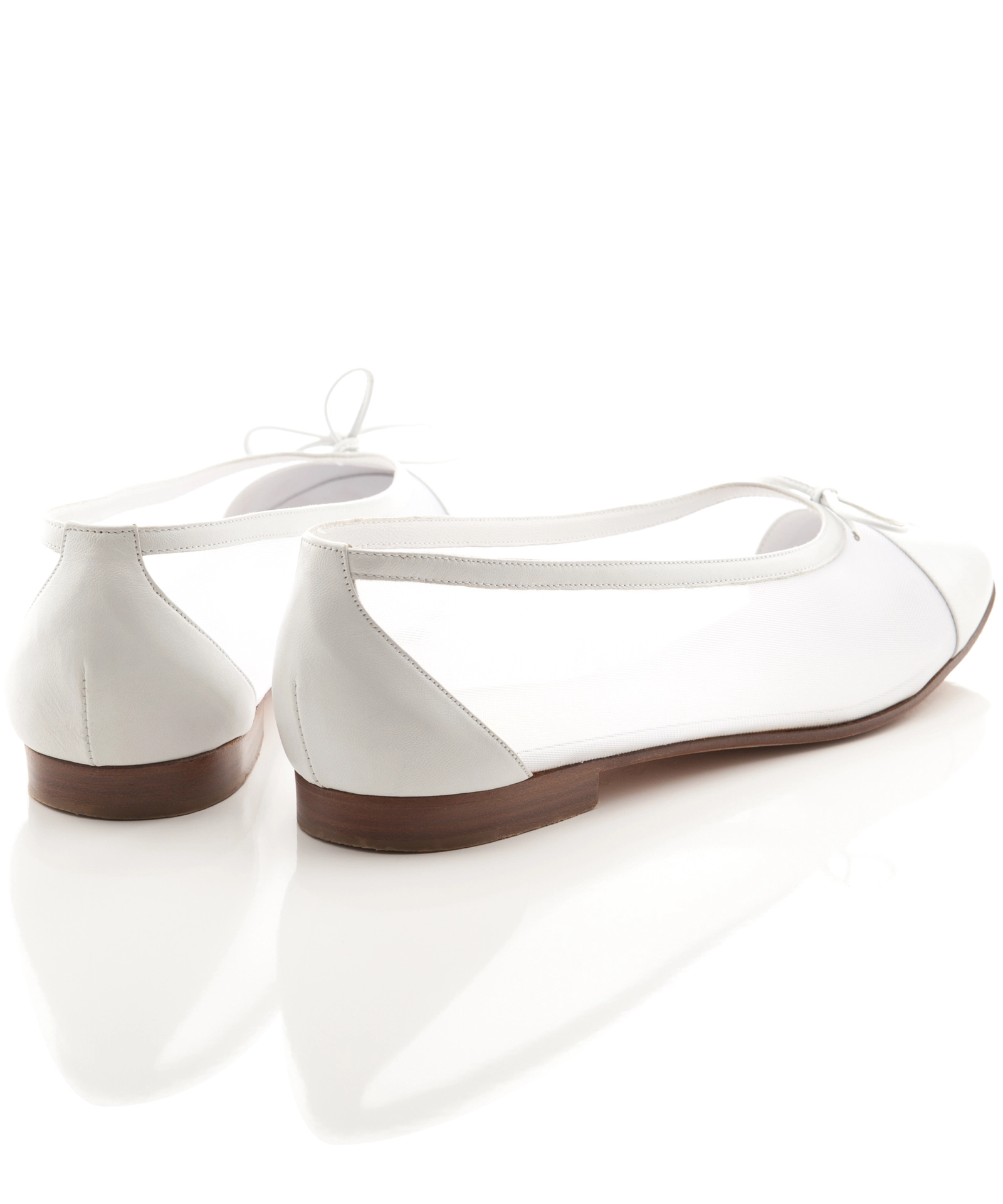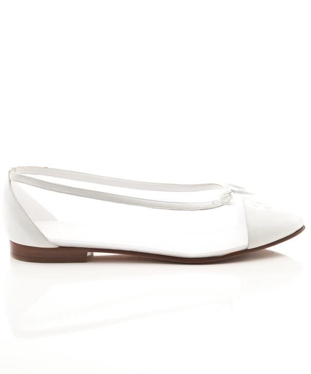 Chanel Bow CC White Mesh Canvas/Leather Cap Toe Flats