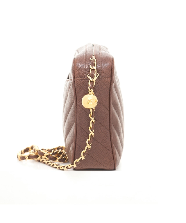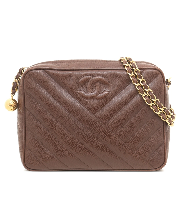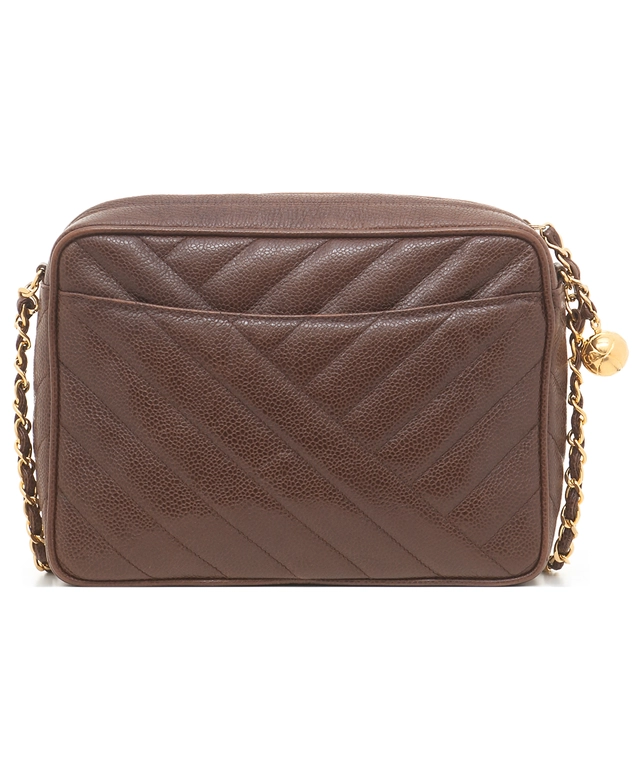 Chanel Brown Caviar Chevron Quilted Camera Bag