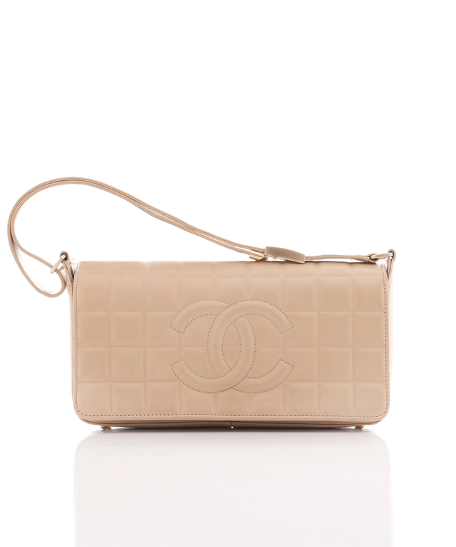 Chanel 'East West' Flap Bag in Tan Leather Chocolate Bar Pattern
