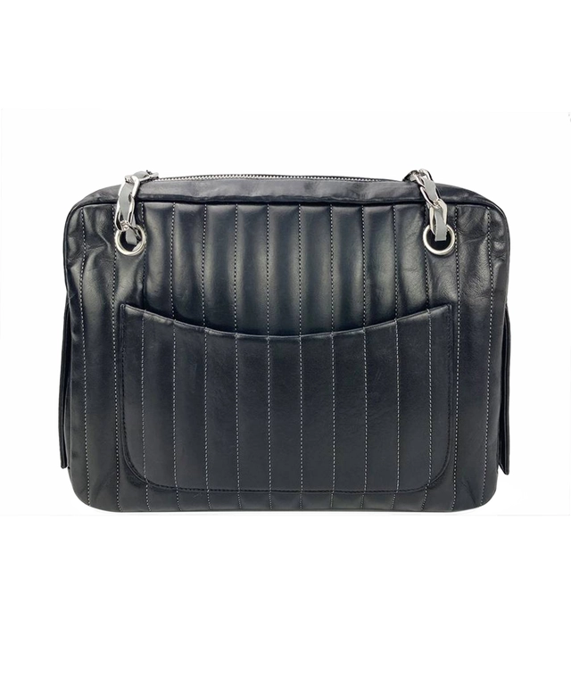 Chanel Mademoiselle Ligne Vertical Quilted Black Leather Camera Bag