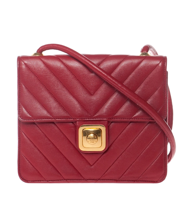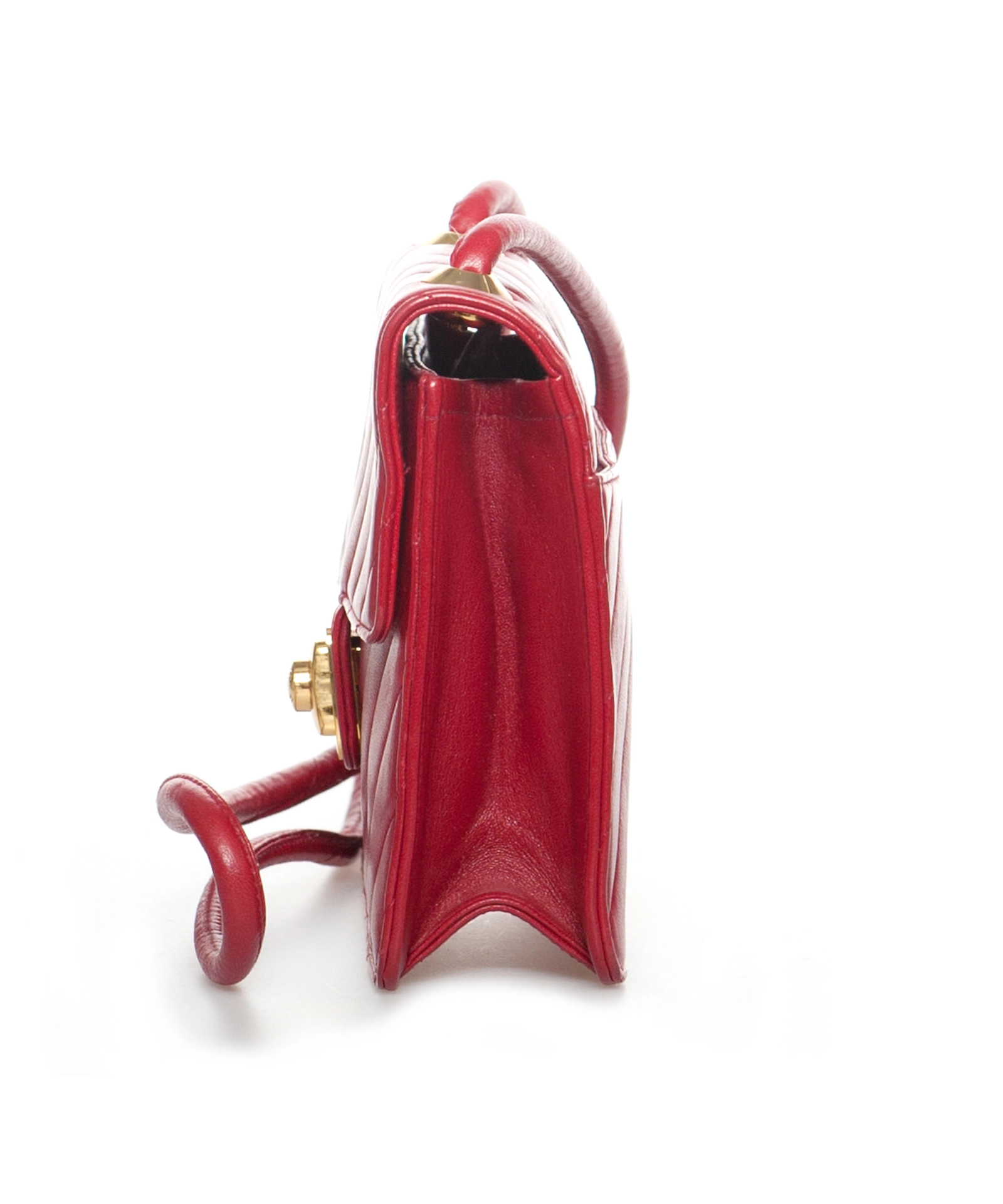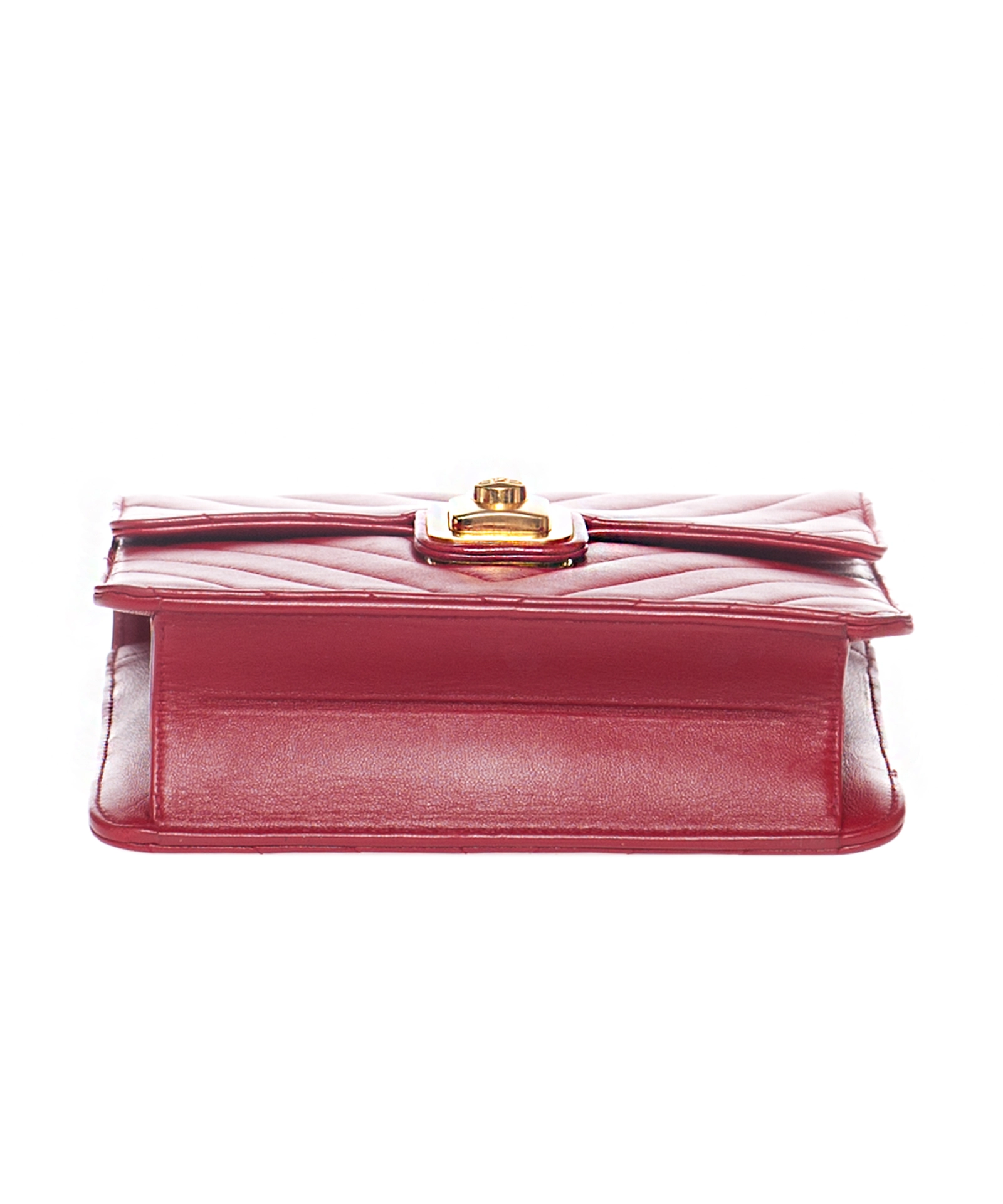 Chanel Red Patent Leather Chocolate Bar Quilted Pochette Bag