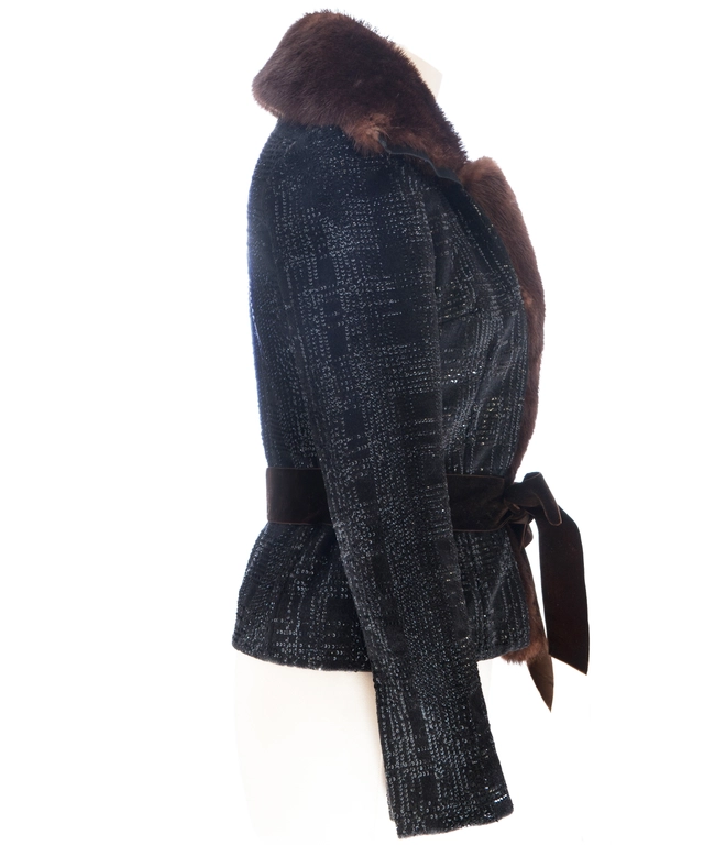 Dolce & Gabbana 'Special Edition' Tweed Blazer with Sequins Fur Trim