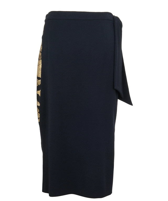 Dries van Noten Black Wool Skirt with Gold Embellishment