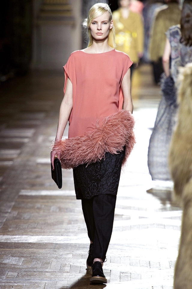 Fall 2013 Dries Van Noten Runway Ostrich Feather Trim Top