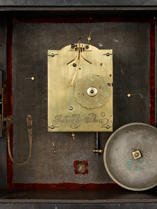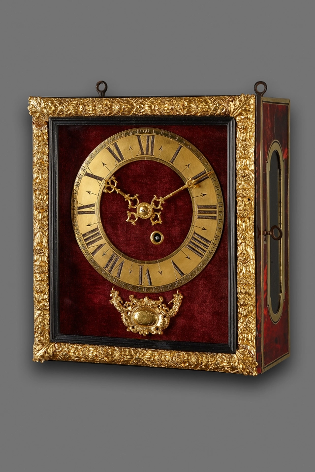 gilt bronze, burr walnut casing veneered with ebony and tortoise, fire-gilt brass