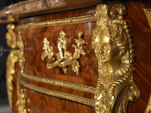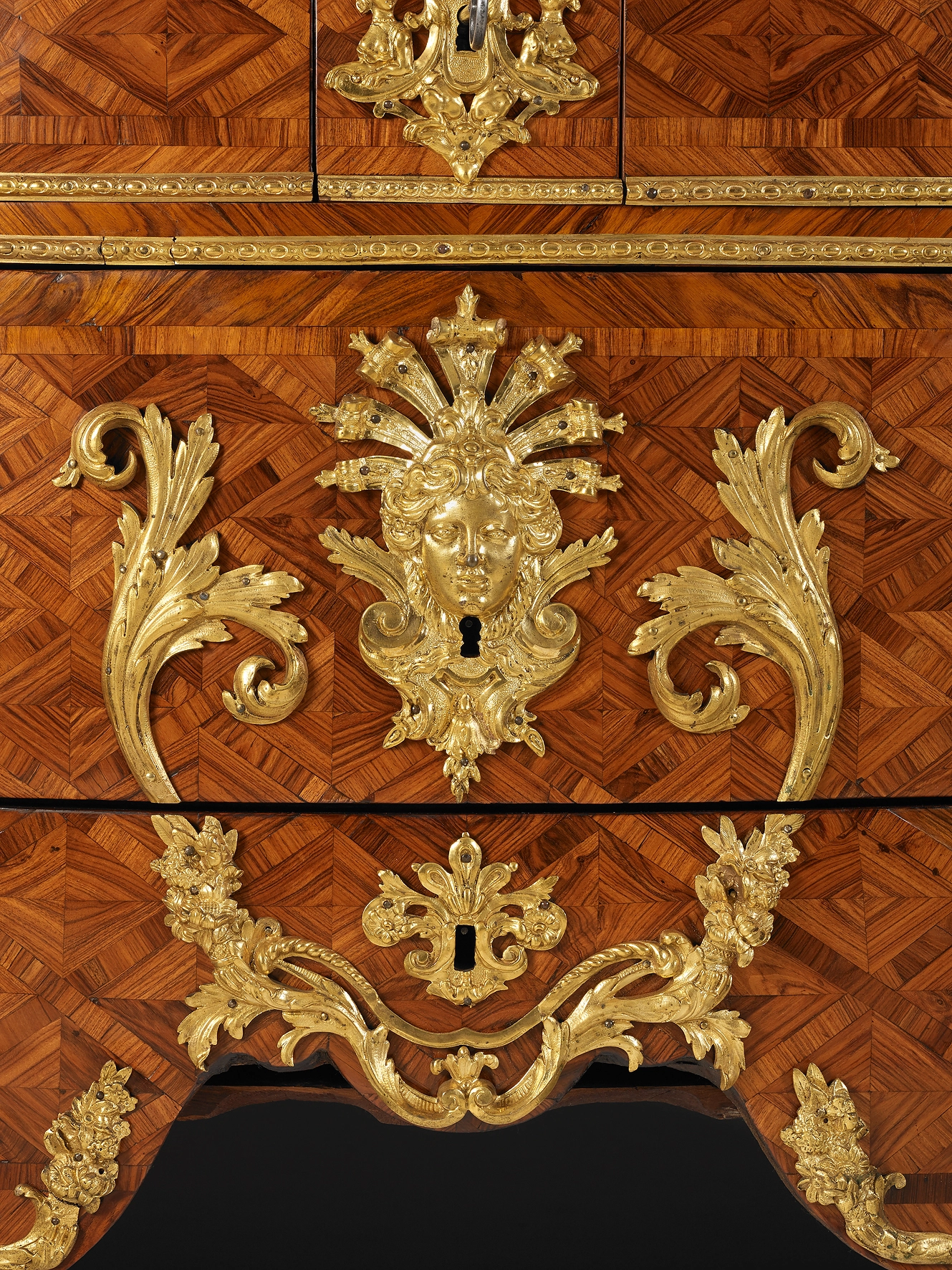 On his death in 1732 his studio had eleven employees. The inventory mentioned no fewer than 200 pieces of furniture, finished or unfinished, including commodes, bureaux-plats and bookcases, but also ‘sécretaires en pentes’ entirely to the taste of the time. The style and quality of Doirats’ furniture equals that of André Charles Boulle in both structure and finishing, as well as in the application of bronze ornaments. This style precedes similar furniture by Charles Cressent (1685-1768).