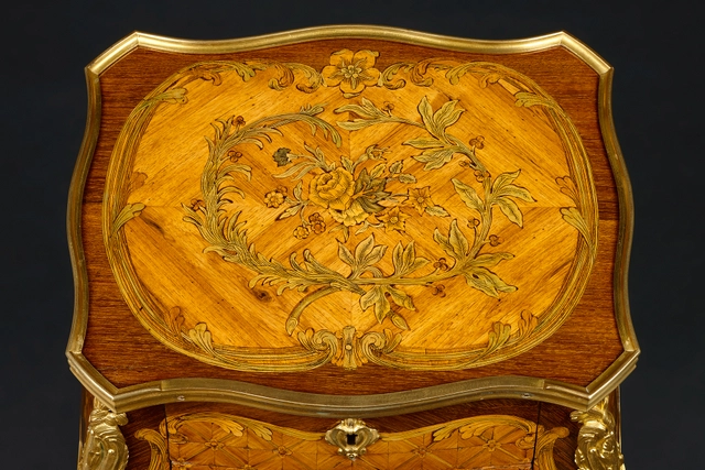 A third work and writing table has been part of the Robert Lehman Collection in the Metropolitan Museum of Art since 1975. However, the marquetry of this example is slightly different (inv. 1975.1.2023). From 1924 to 1947, it was in the possession of Henri de Rothschild, who lived in the newly constructed Chateau de la Muette in the 16th Arrondissement in Paris. The table later became part of the Lehman collection via the art dealer brothers Duveen.