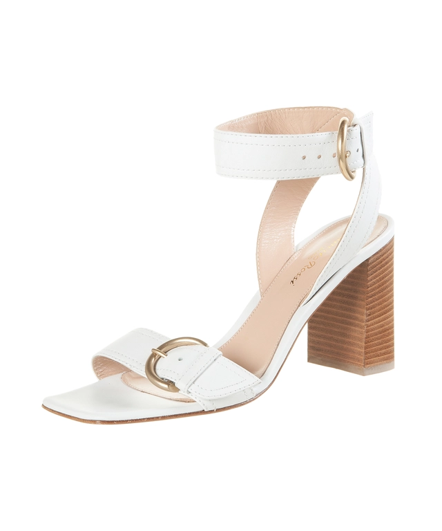 Gianvito Rossi White 'Harper 85' High Blockheel Ankle Strap