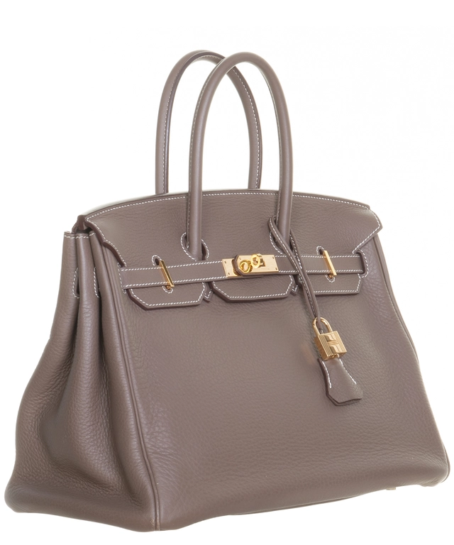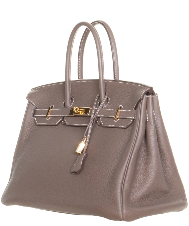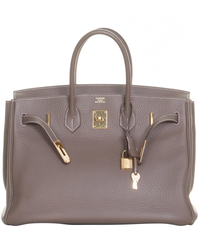 Hermès Birkin 35 Taurillon Clemence Doublure Chevre Etain