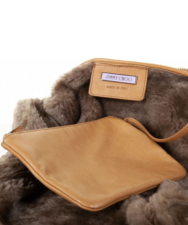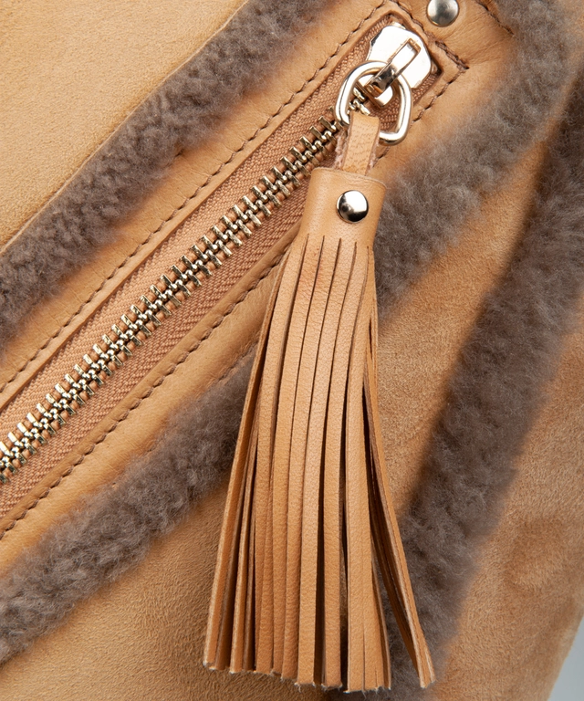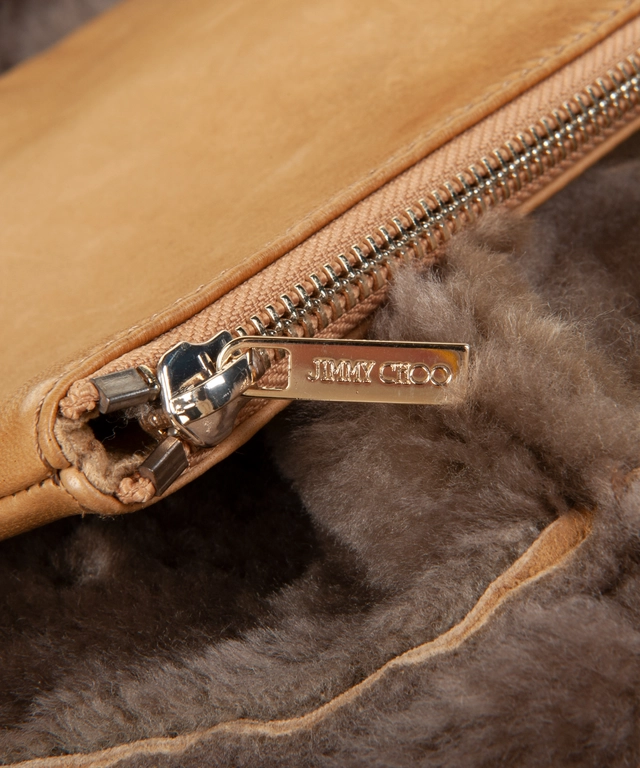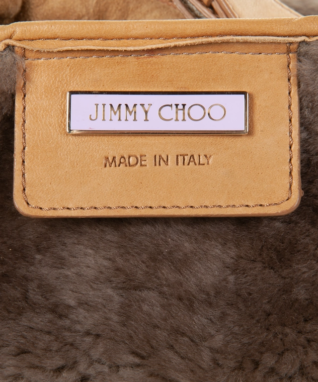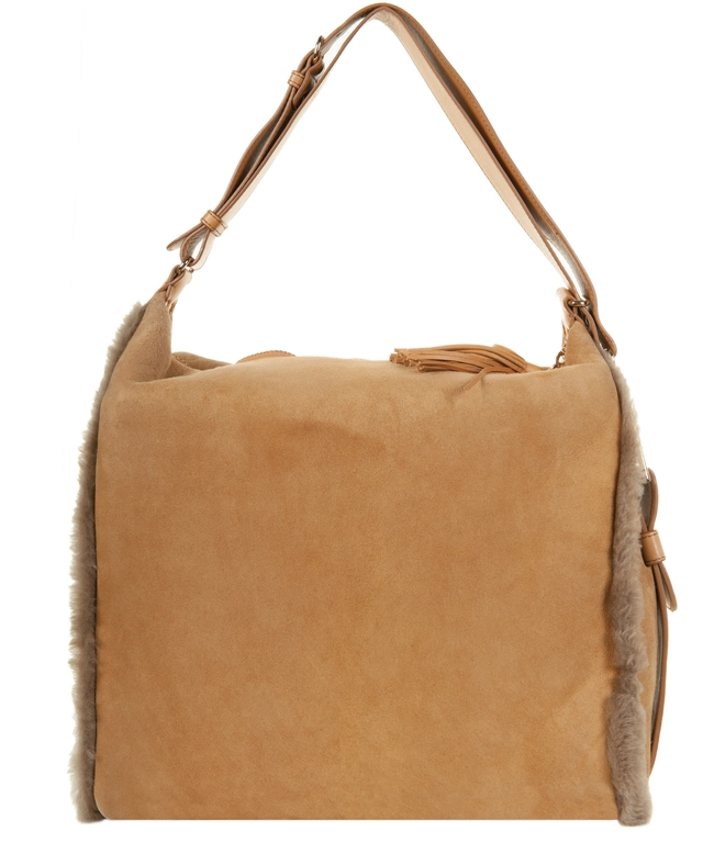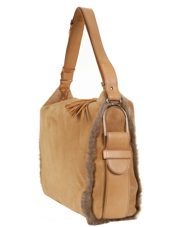 Jimmy Choo Camel Nubuck 'Lily' Tassel Hobo Bag - Shearling Trimmed