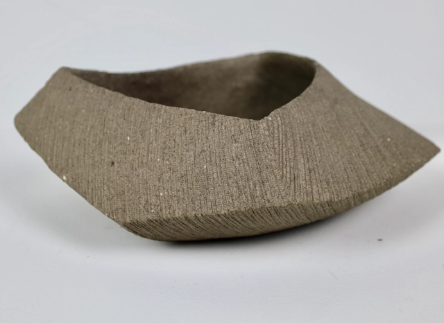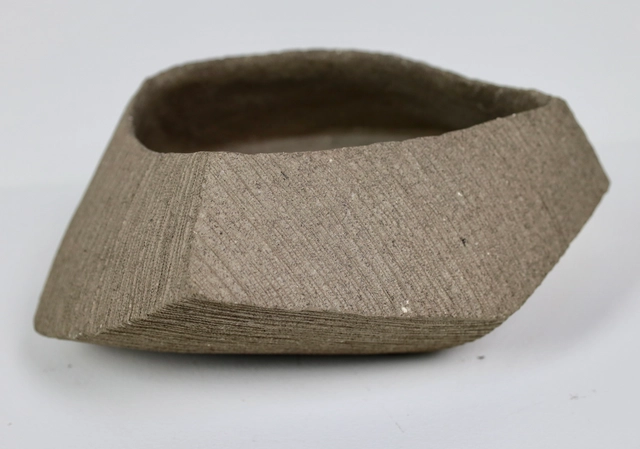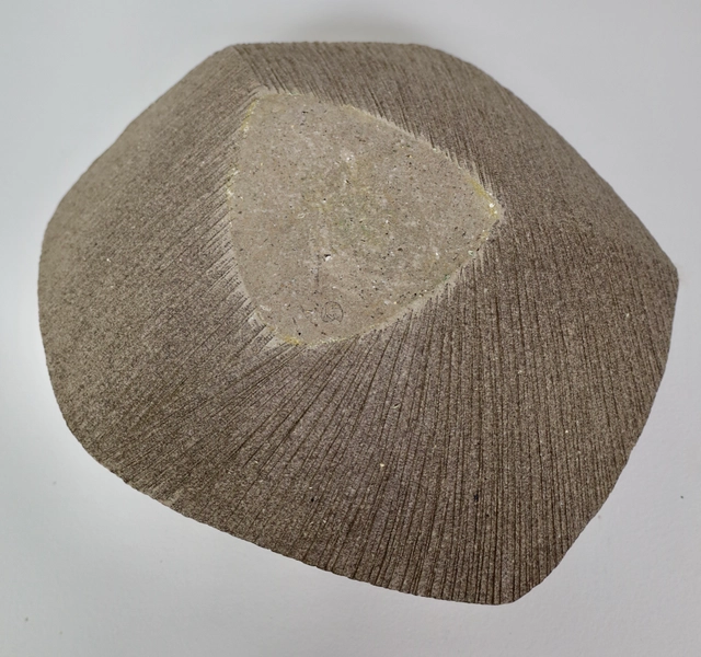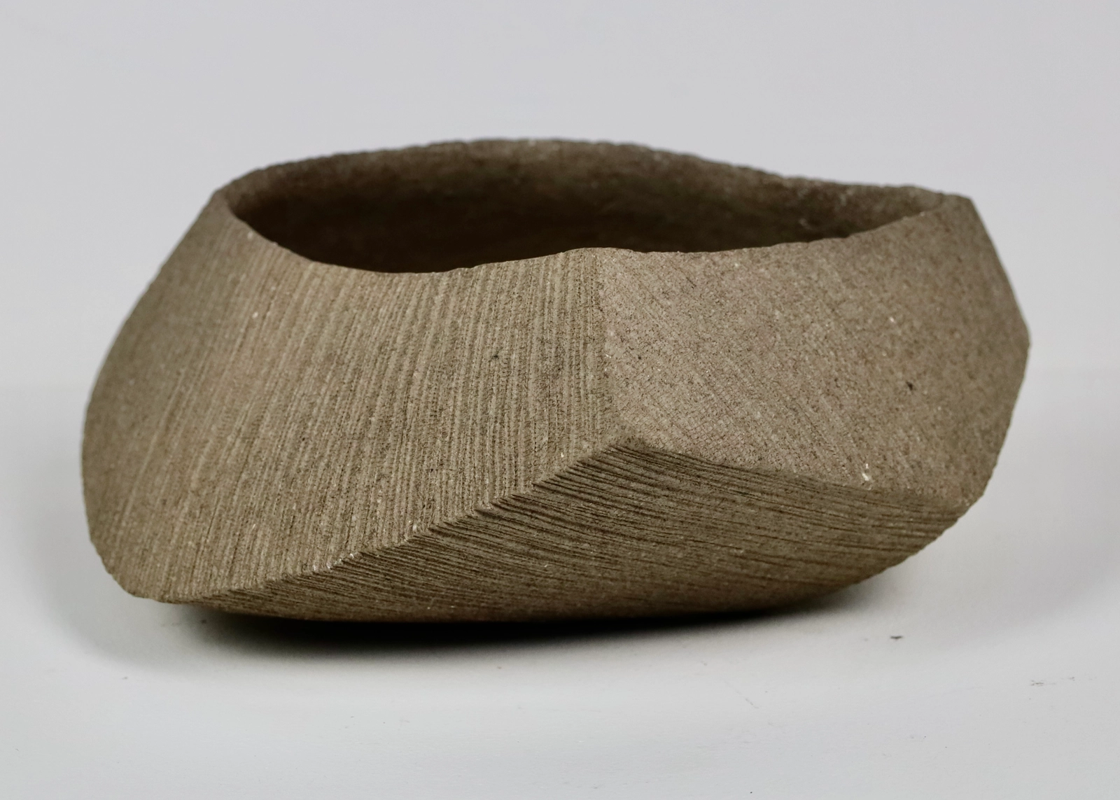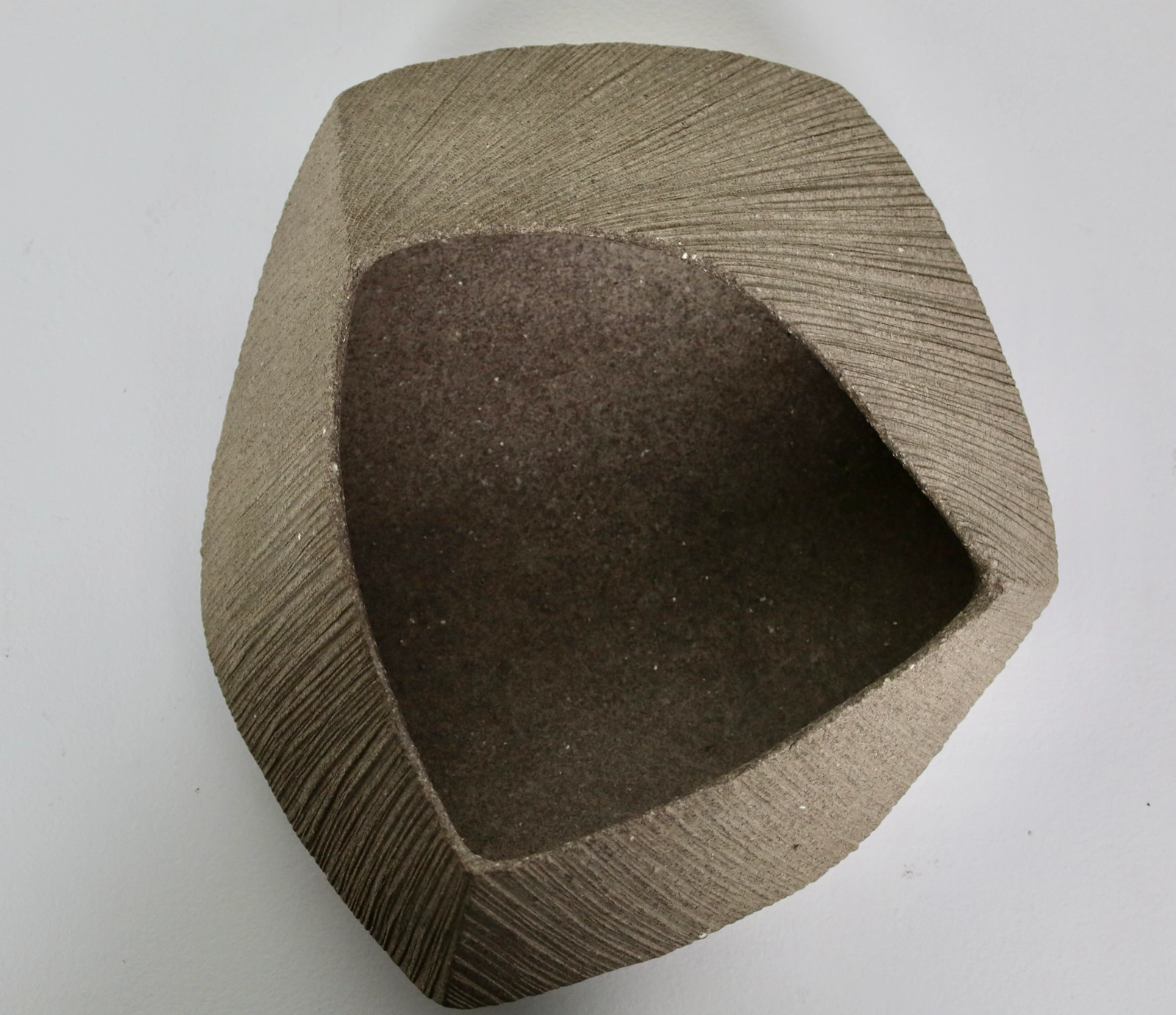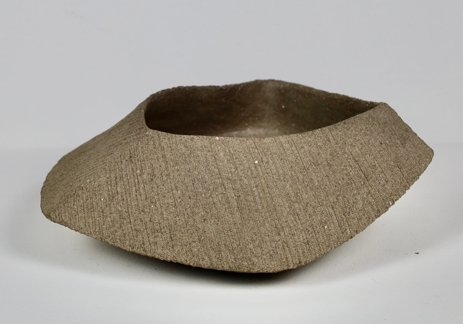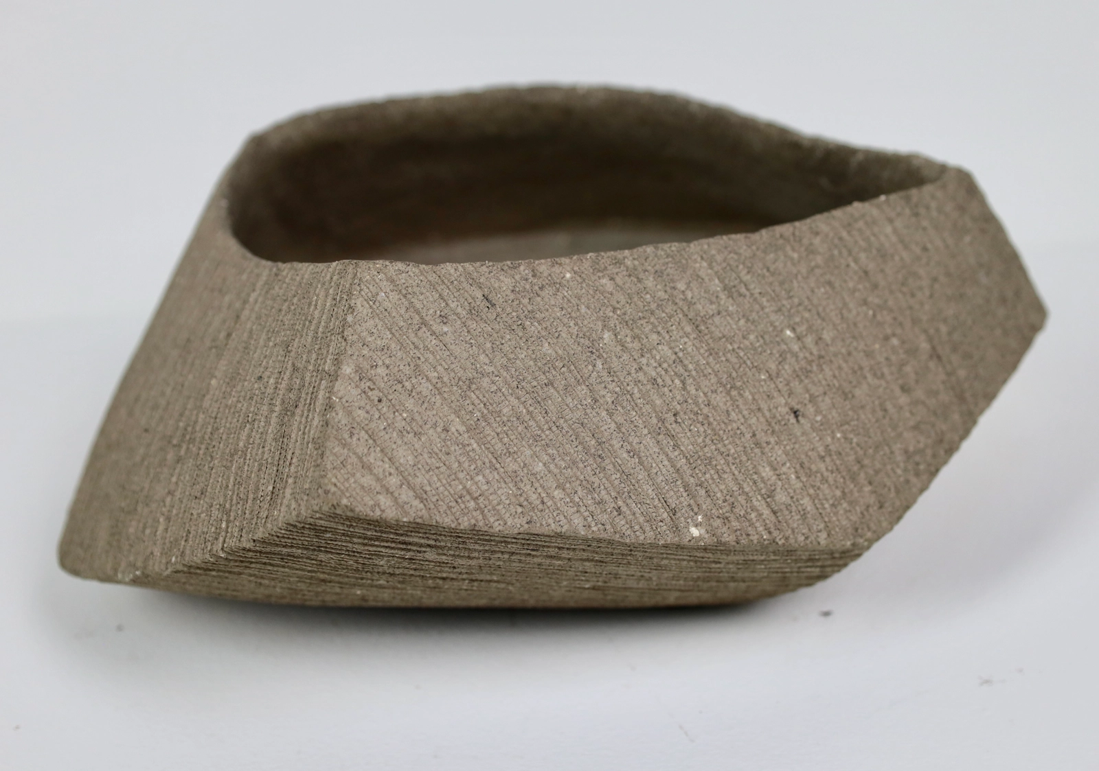 Kayoko Hoshino (1949), abstract shaped, stoneware, lidded box, decorated inside with silver foil, design & execution own studio in Japan. Purchased at gallery Carla Koch Amsterdam around 2007.