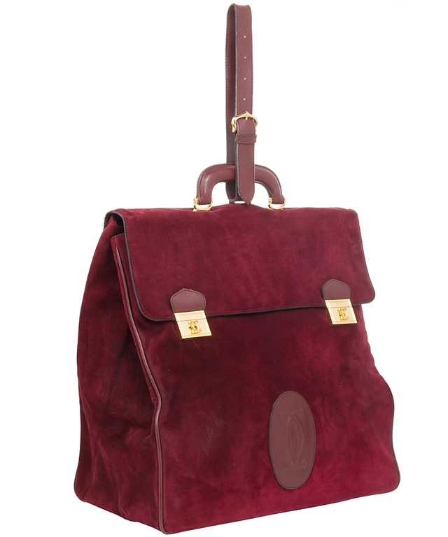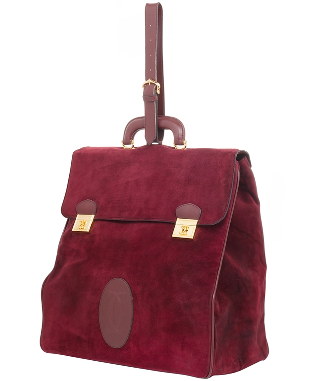 Les Must de Cartier Vintage Burgundy Suède Messenger Bag from the 'Orient Collection'