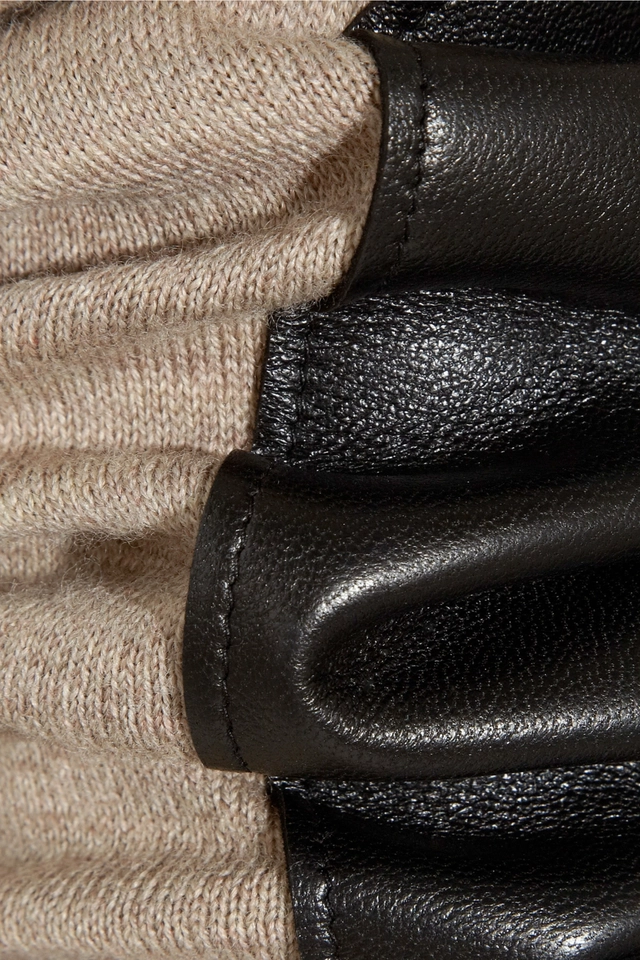 Maison Margiela Leather-detailed Taupe Wool Cardigan