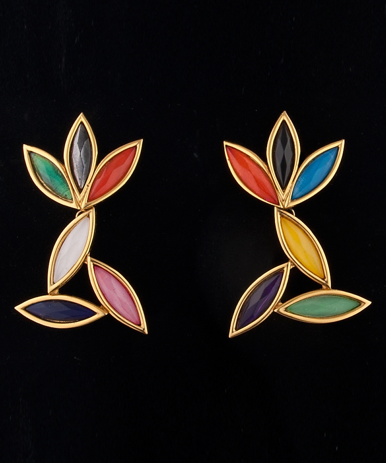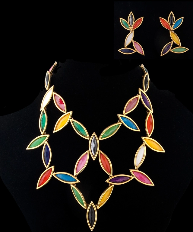 Multicolor Enamel Rhinestone Geometric Earrings and Necklace
