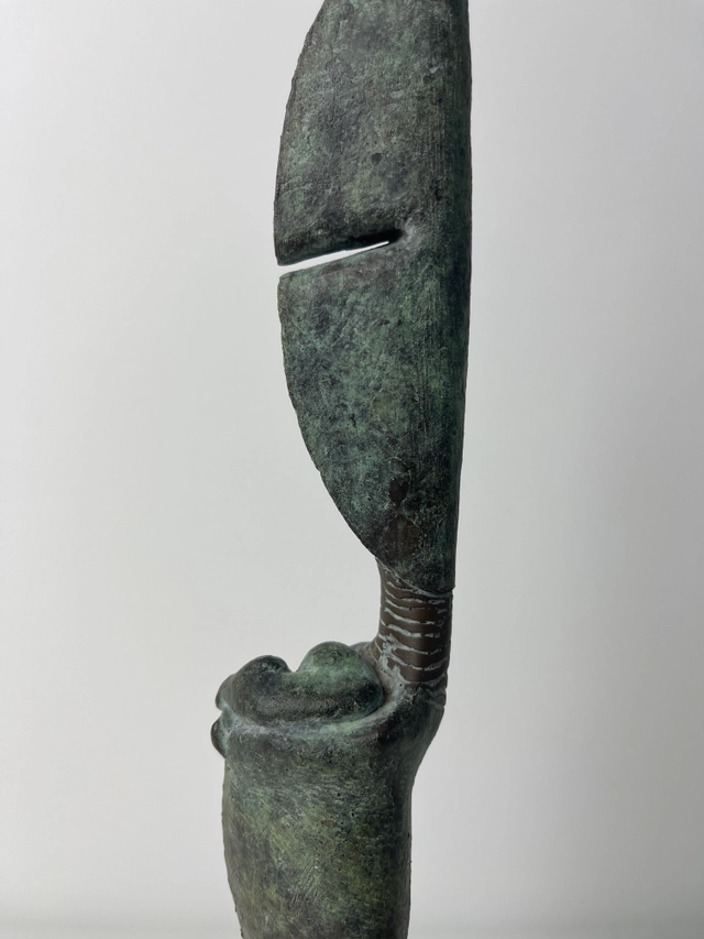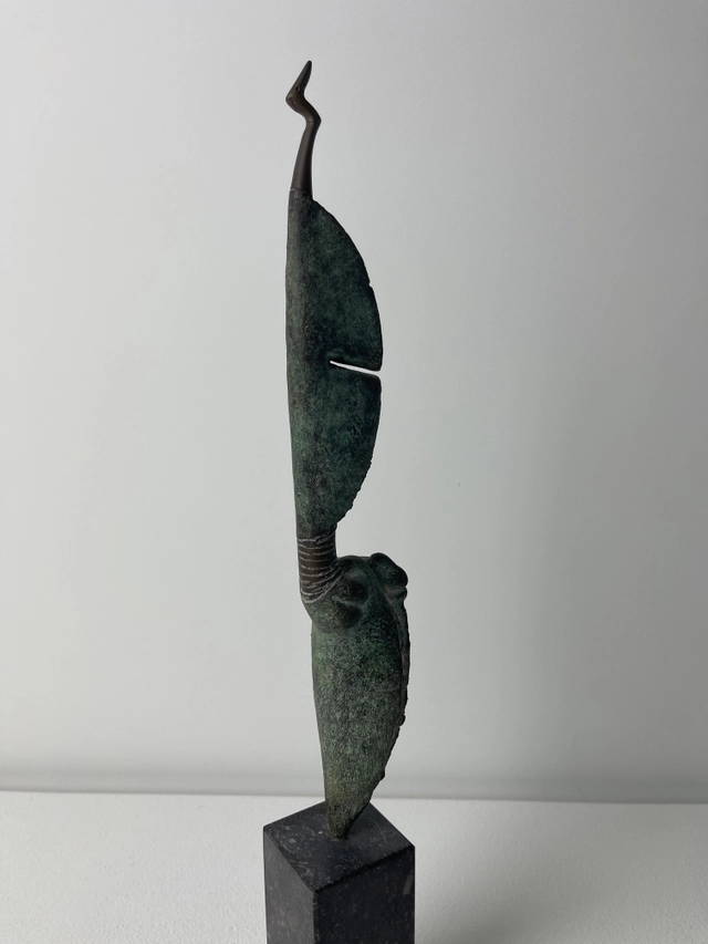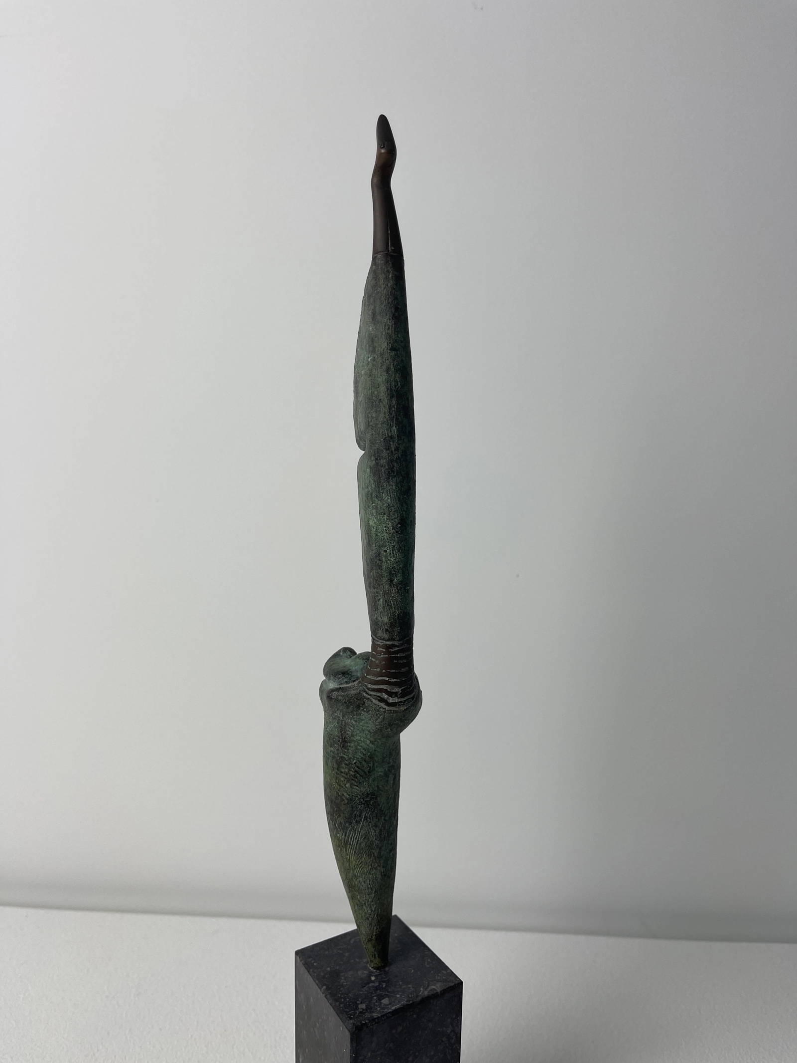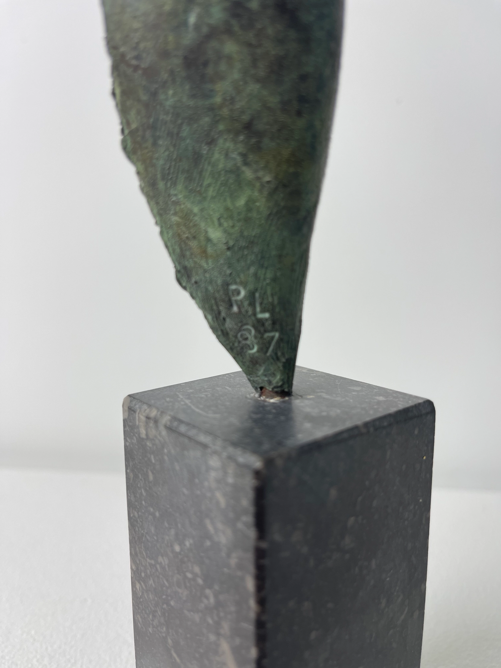 Pierre Lumey, patinated bronze sculpture titled 'Zuidenwind', 1987