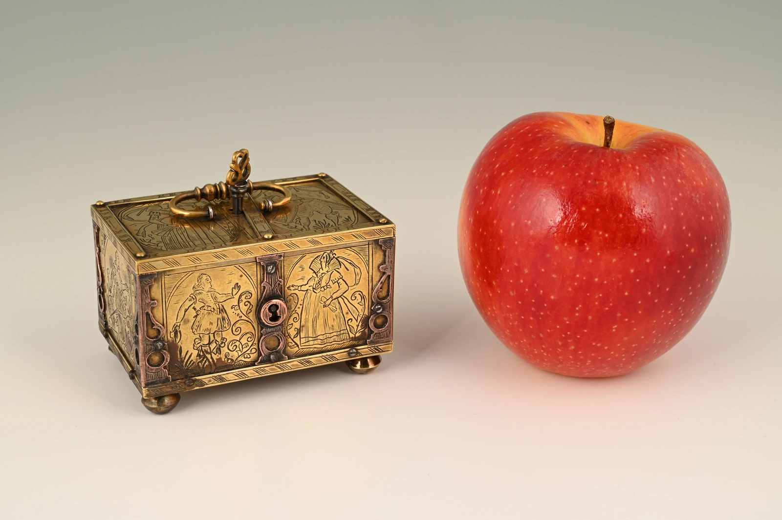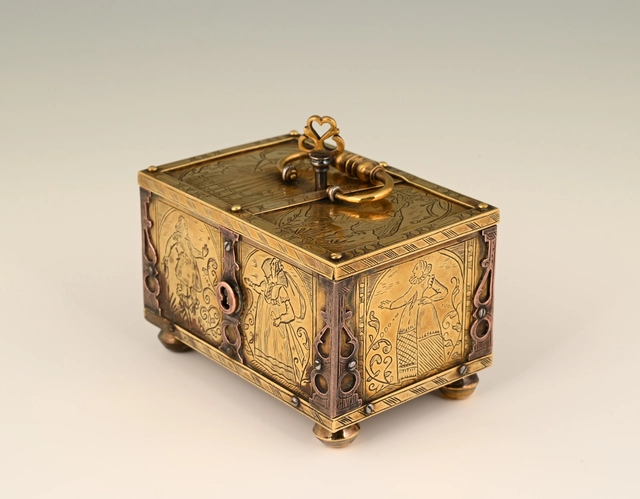 This miniature chest has been attributed to Mich(e)l Mann. He was born between 1560 and 1570, probably near Augsburg, Germany.