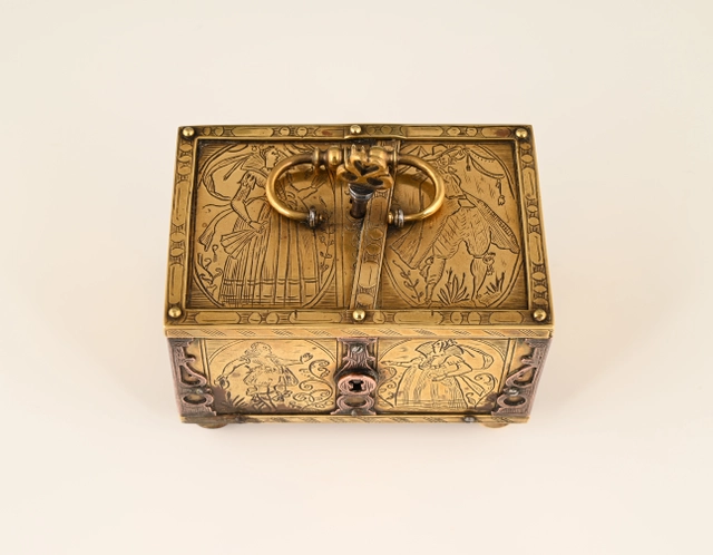 This type of small box provide a safe place to keep valuables and were often given as wedding gifts.